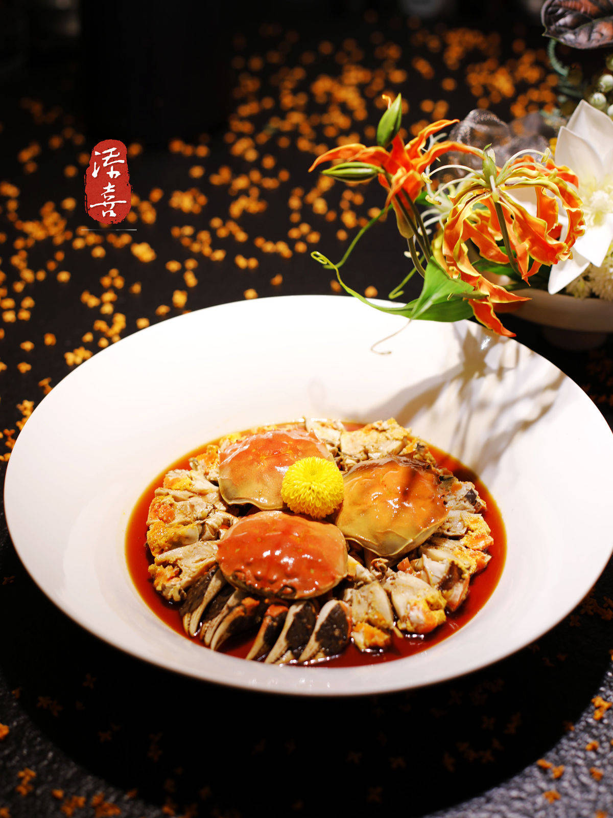 精选四至五两红膏梭子蟹,每一只都膏满肉肥,橙红诱人。腌制时先以海盐轻撒,让咸鲜缓缓渗入蟹肉,既提本味,也起初层杀菌之效;再淋白酒,进一步去腥增香,也添一丝醇意。随后调入秘制酱料,低温速冻锁住蟹肉细腻与蟹膏绵密,既保安全,也留原鲜。上桌前淋一勺秘制姜醋汁,姜香与醋意交融,既解腥气,也中和寒性。更带出几分酸甜层次,让整体风味更显清透。蟹肉入口细滑冰凉,如冰淇淋般绵密;红膏咸香浓郁,裹着姜醋的微酸清甜,丝毫不腥。配一杯小酒,慢品浅酌,正是恰到好处的惬意。