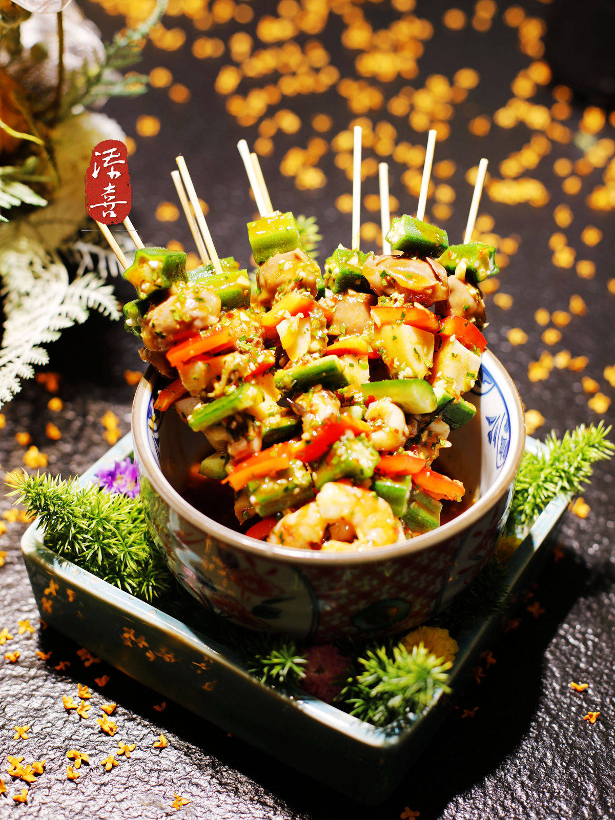新鲜现切现串,甄选大连小鲜鲍、活虾与盐卤鸡胗,与各色有机时蔬交替成串。主厨特调泰式风味酱汁,层次丰富,香气袭人。串串色泽诱人,入口鲜弹交织,酱汁的酸辣与食材的本味碰撞,过瘾不腻。桌桌必点,人手一把,吃得自在,聊得畅快。