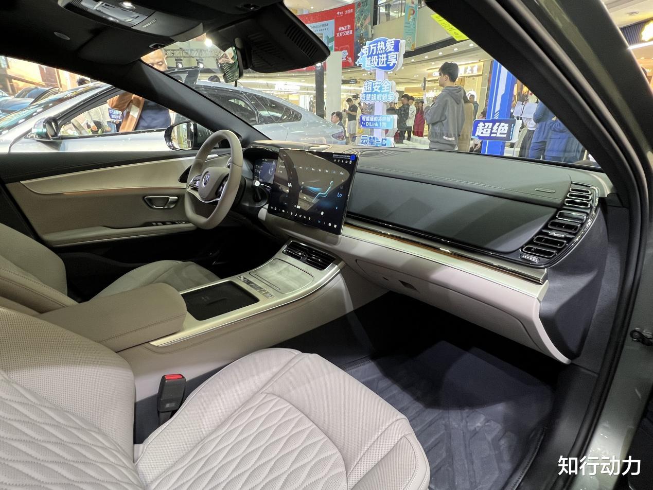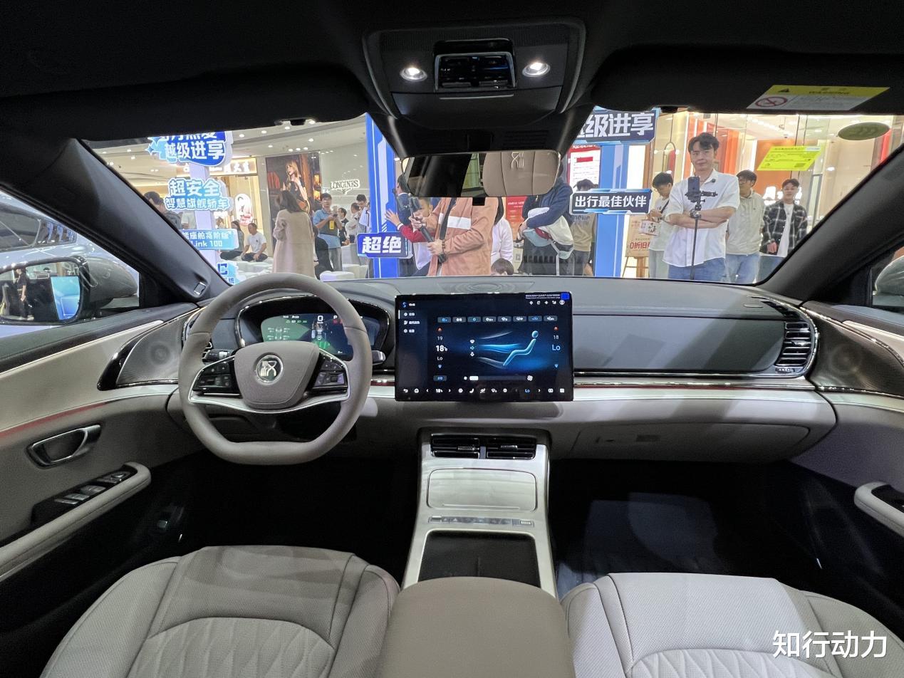 内饰部分,汉长续航版取消了传统造型的换挡杆,改为怀挡设计,这样岛台就能腾出更多的空间,所以像手机无线充电板就可以安排上了。多功能物理按键则改为单排设计。另外汉长续航版还将车内饰板从高光亮黑色改为哑光色,高配车型新增了双拼色皮质包裹方向盘和车载冰箱。