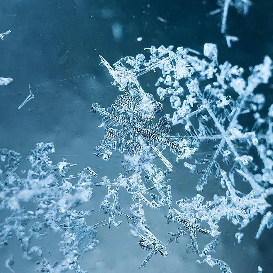 雪花的结构多样性可以分为两个层面:一是宏观形态的差异,如片状、星状、柱状、针状等;二是微观细节的差异,如枝杈的分形特征、表面的纹理等。这些差异共同构成了雪花丰富多样的外观,使其成为自然界中最具个性的造物之一。
