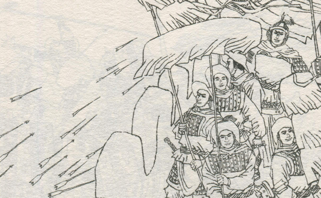忽然,万弩齐发,鼓声震耳,城头旗帜并举。金兵见状不妙纷纷后退,可是,已被射死不少,有些还跌入了壕沟。