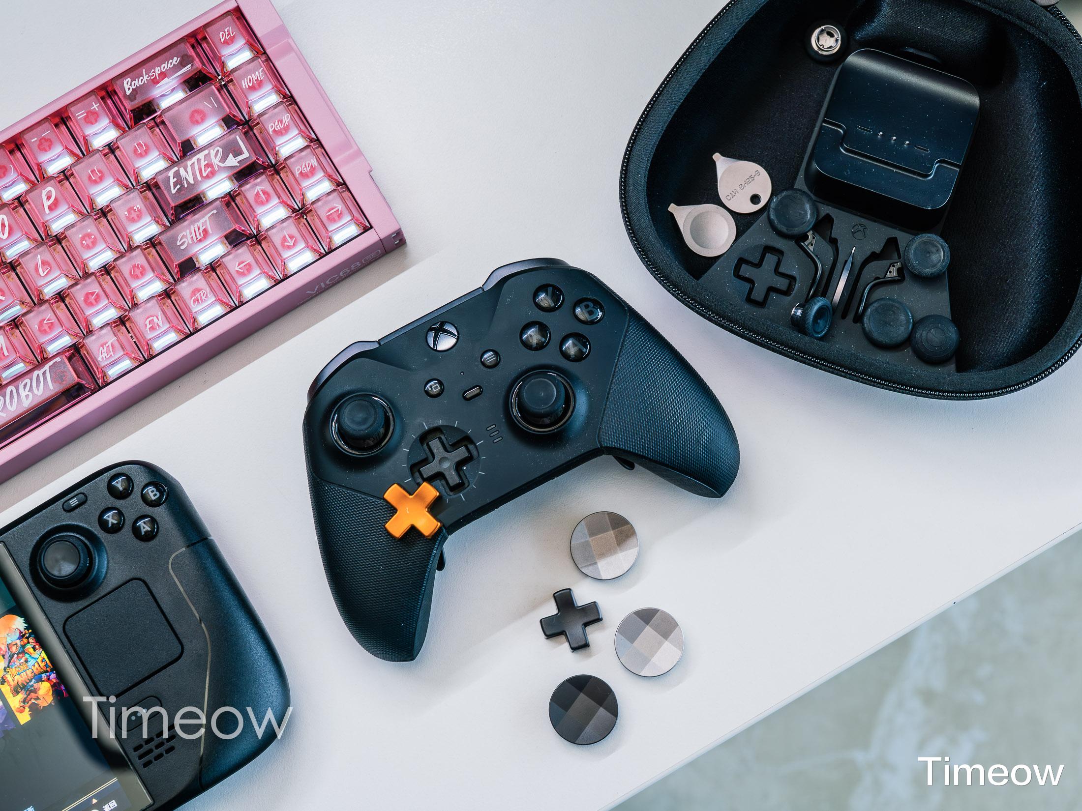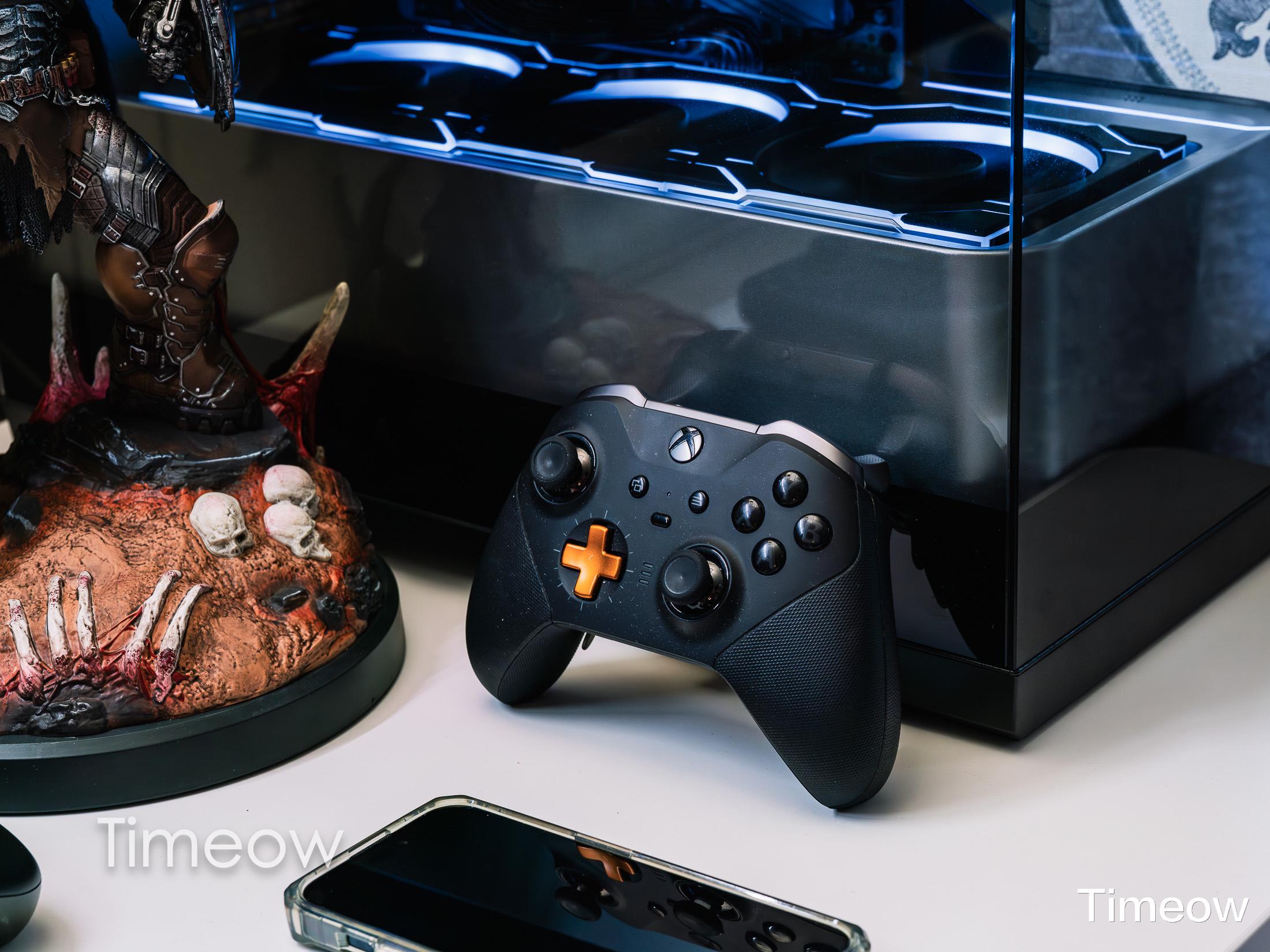 台式机旁边还躺着Xbox精英手柄2代,用它玩3A游戏真的是享受,手感是我用过的手柄里最好的。