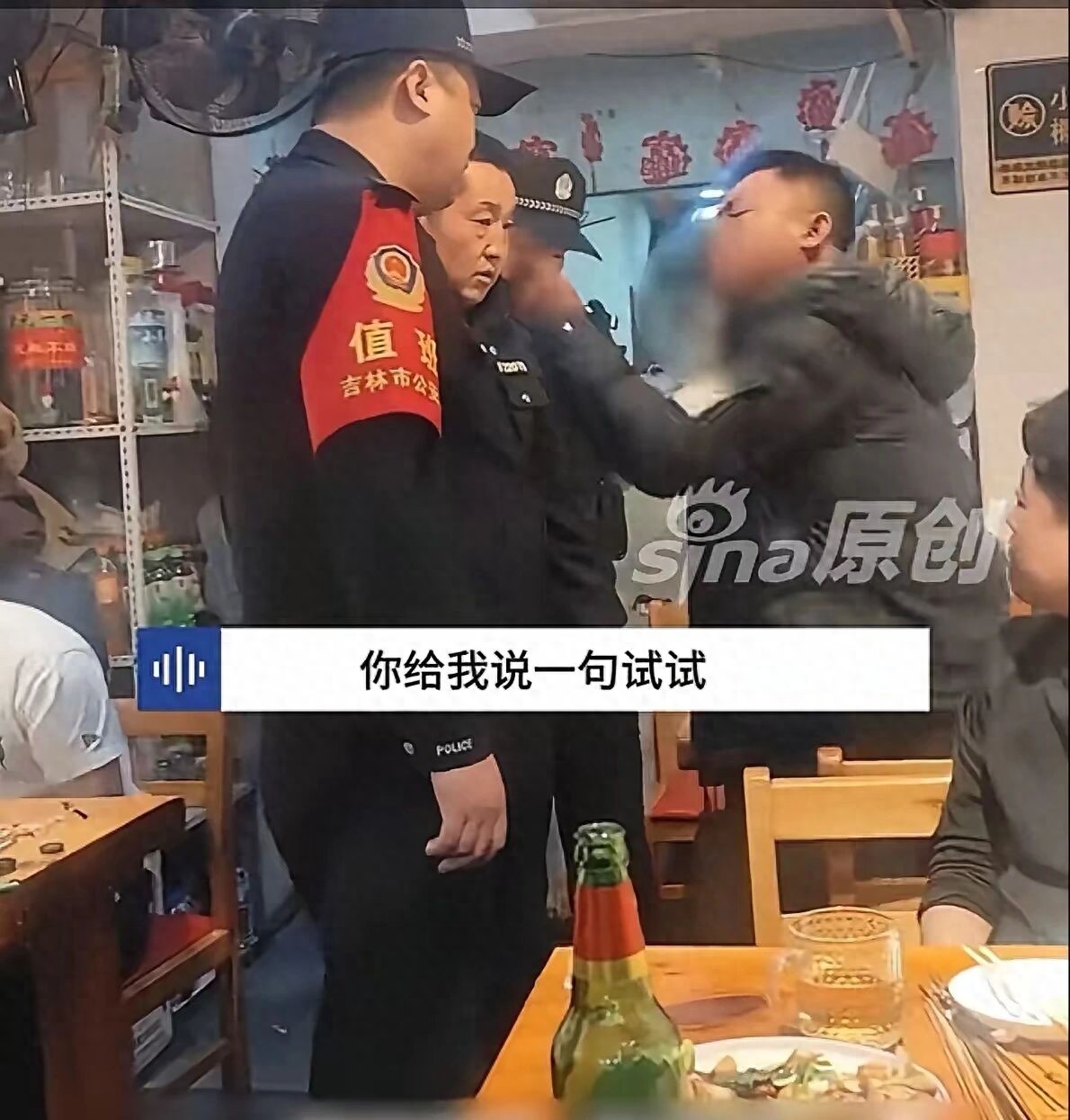 语气狂得没边,说话颠三倒四,浑身的酒气隔着屏幕都能闻到。民警耐着性子,一遍又一遍劝他,吃饭付钱是天经地义的事,不管喝没喝酒,都得给钱。可男子根本听不进去,反而“腾”地一下站起来,凑到民警面前挑衅:“你再给我说一句试试!”