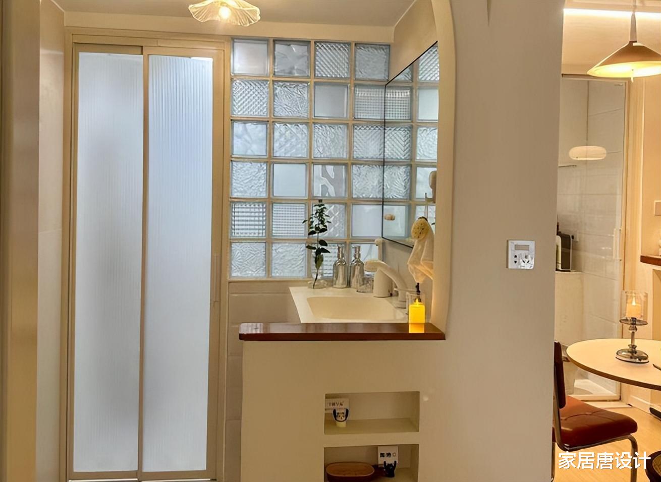 我的建议是,在干湿分区的设计上,尽量避免使用开放式的半墙。一种更好的选择是使用极窄边框的金属玻璃门或长虹玻璃,这样既能保证隐私,又不失美观。如果你确实喜欢开放式的设计,那么在半墙上方增加壁龛或开放格设计,可以用来收纳日常用品,既实用又不影响美观。