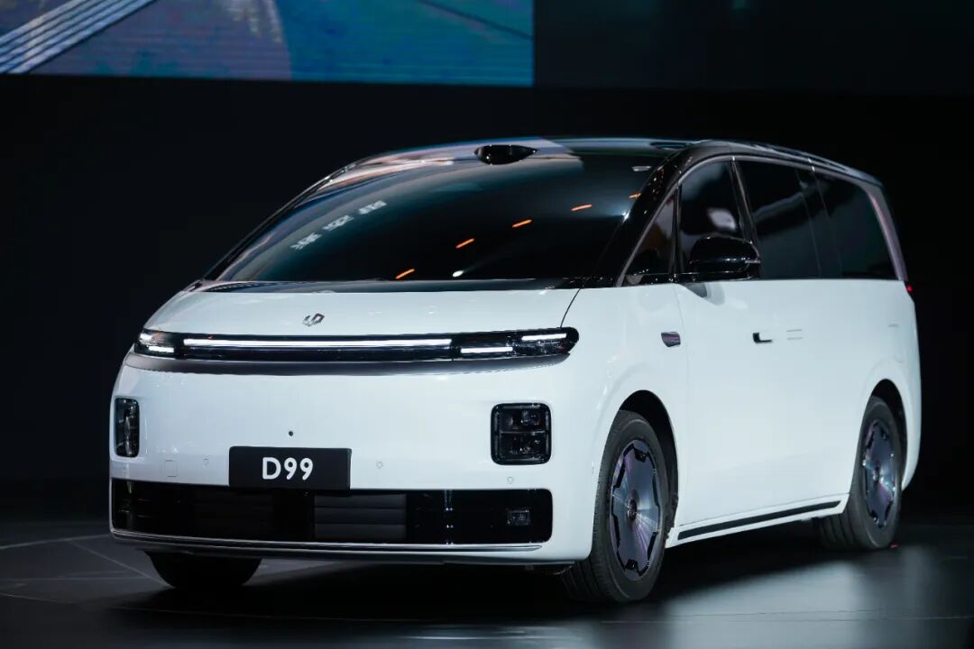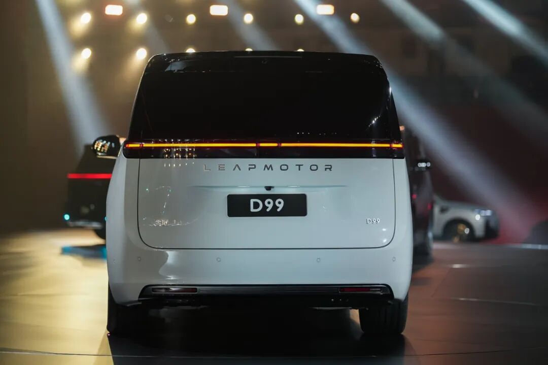 零跑D99基于LEAP 4.0技术架构打造,外观上,新车采用与零跑D19相似的家族式设计语言,车头部分,并且前脸使用了三段式日行灯+分体式大灯设计,灯带下方设计有贯穿式的哑光银饰板,前灯组采用百万像素DLP投影大灯。前包围底部中央设计有AGS主动进气格栅功能。搭配标志性的饼形轮圈,巨幕天窗加持,车身尺寸方面,车长超5200mm、车宽近2000mm,轴距超3100mm。