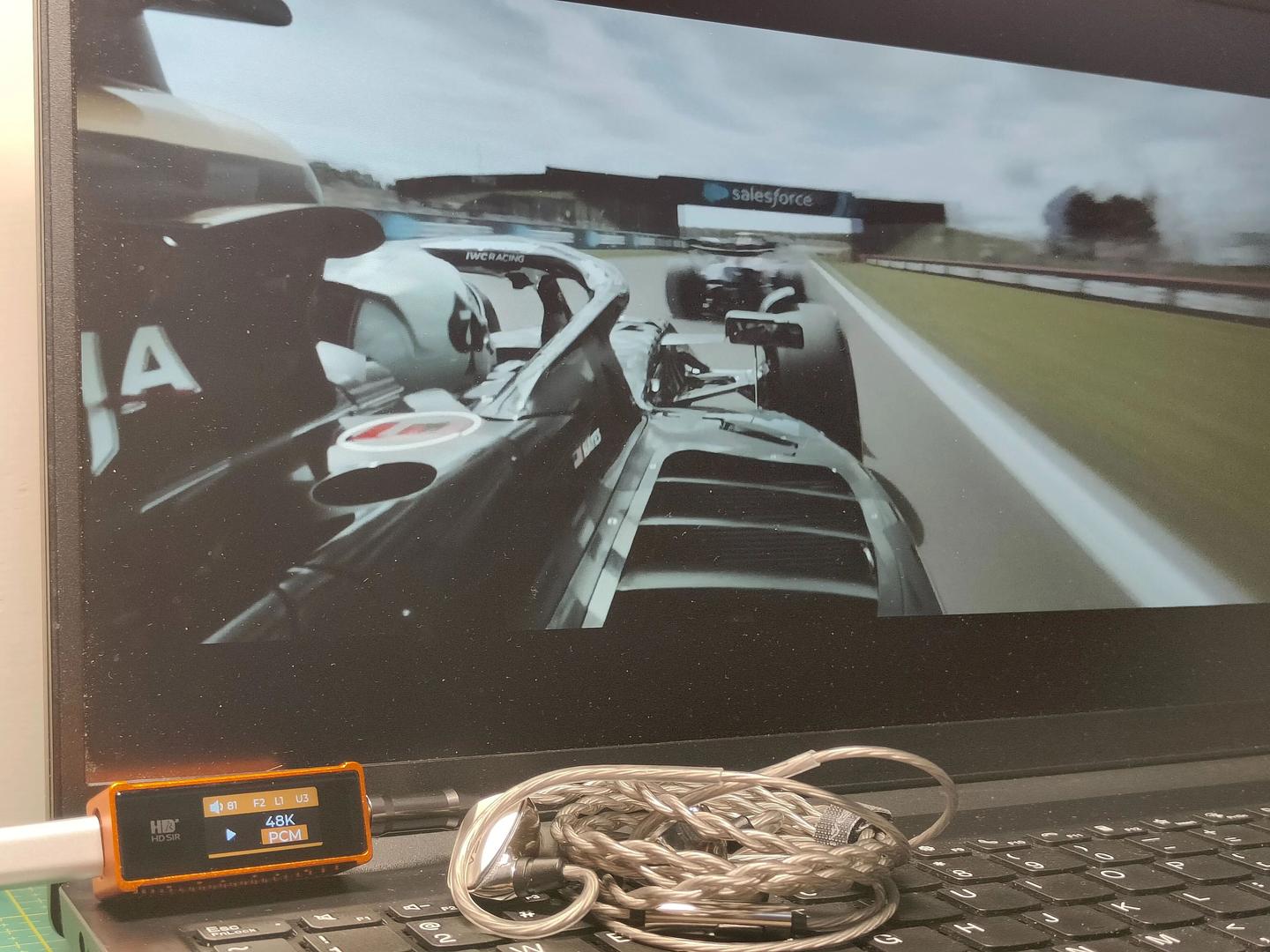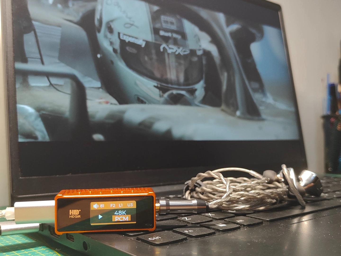 除了听歌,它在影音场景的表现也远超预期。周末用它连电脑看皮特主演的 F1 赛车电影,之前电脑直推,赛车引擎轰鸣糊成一片,轮胎摩擦赛道的细碎声响完全听不到,车队无线电人声也被背景音盖过。而插上 AE8 后,沉浸感直接拉满:赛车由远及近的引擎轰鸣层次感极强,轮胎抓地摩擦声、赛道环境音定位精准,甚至能清晰分辨车辆驶过的方位变化,无线电人声清晰不刺耳,完全不会被引擎声掩盖,搭配音画完全同步的低延迟表现,观影临场感直接拉满。