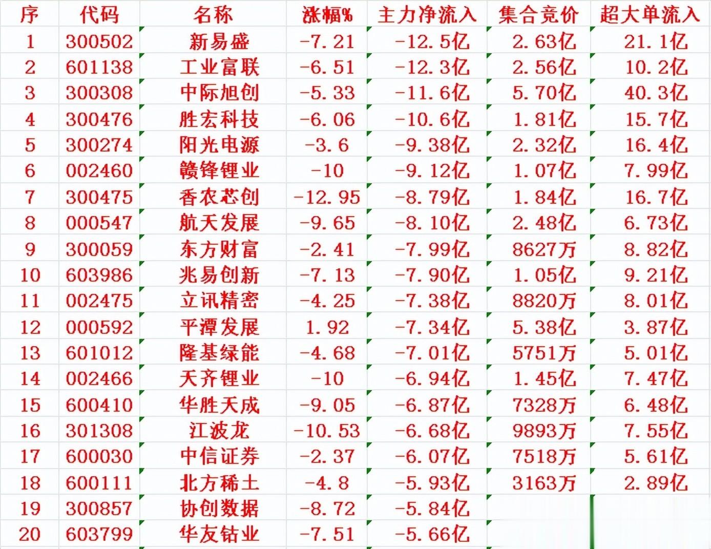11月21日中午收盘,主力资金“大幅买入”的名单: