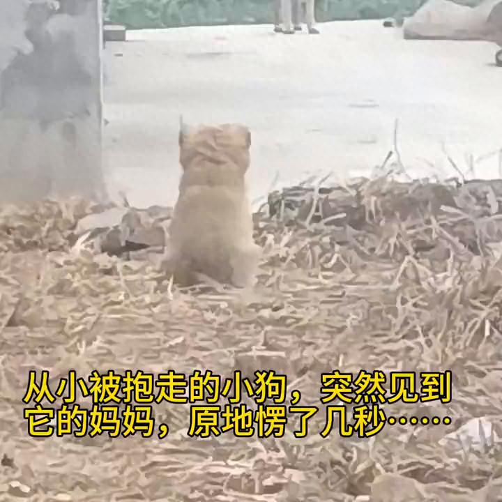 从小被抱走的小狗,突然见到它的妈妈,原地愣了几秒。