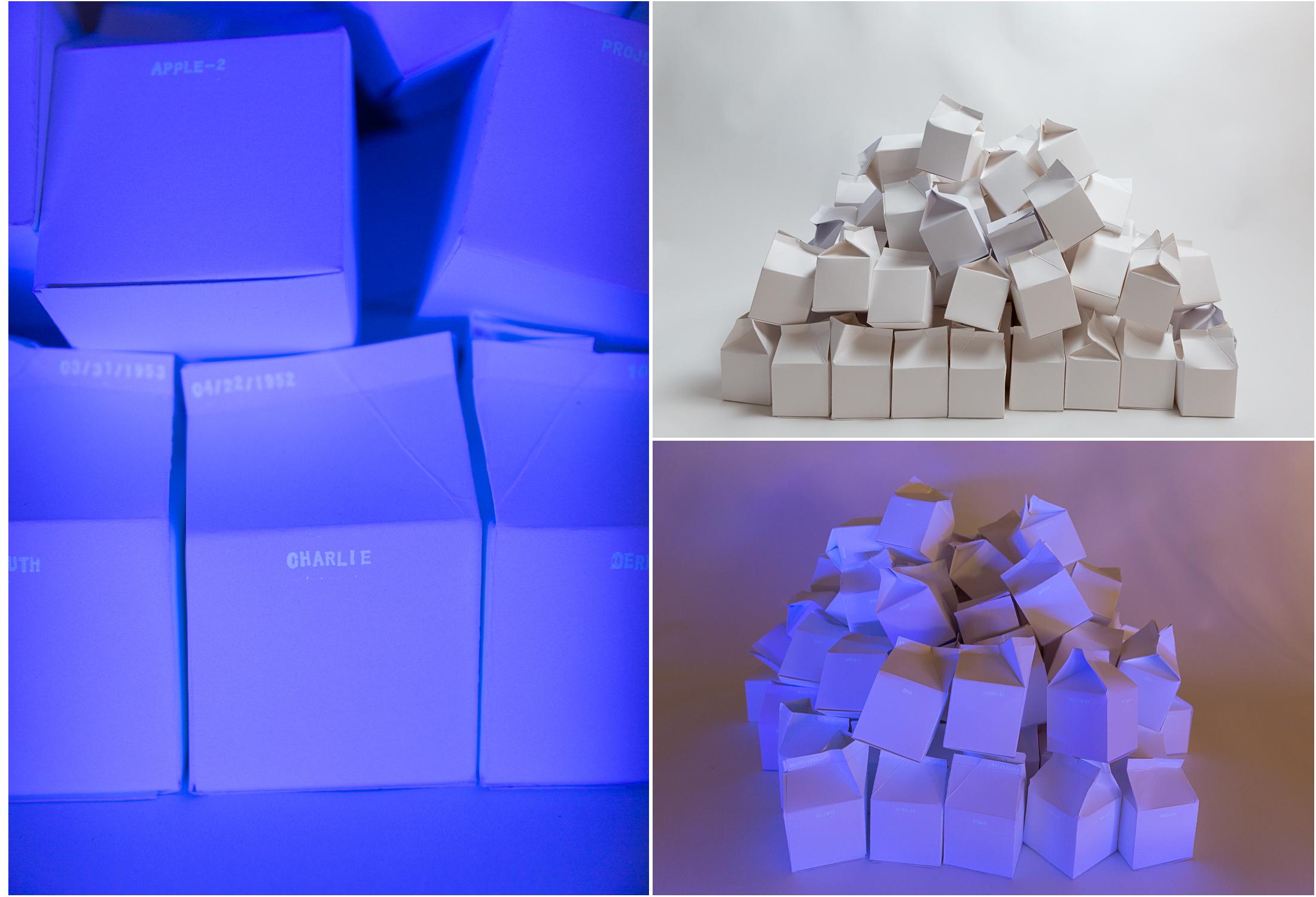本系列作品中的肖像画借鉴了20世纪80年代的一项活动,该活动将失踪人员的照片印在牛奶盒上,将个人、社会和政治问题相结合,以审视持续存在的核遗留问题。