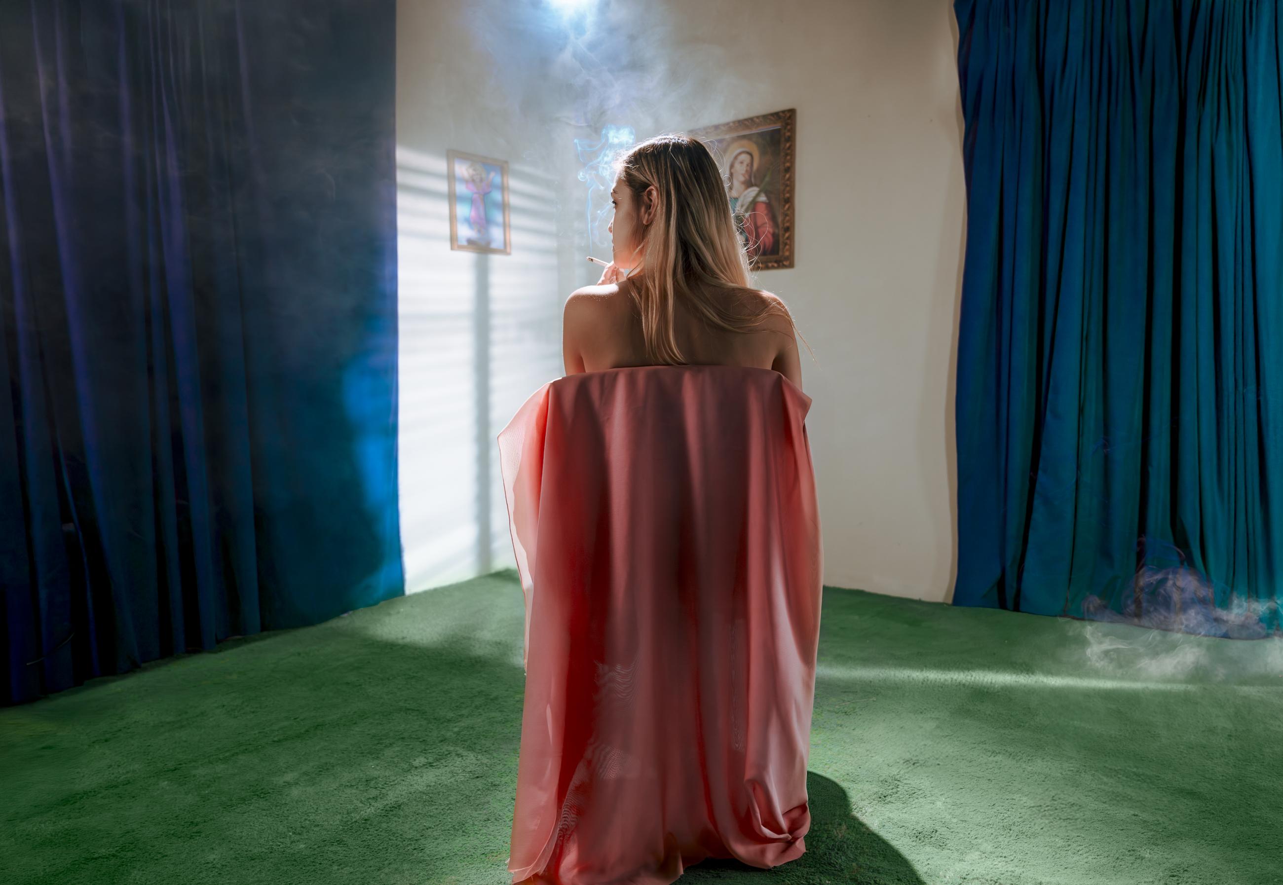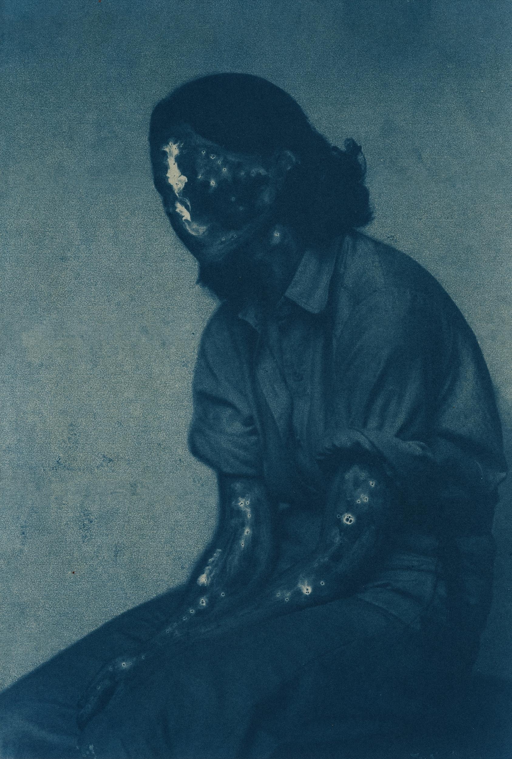 《特雷扎》系列诞生于缺失之中;诞生于艺术家曾祖母被抹去的过往。由于没有家族记录,摄影师从碎片、沉默和痕迹中重建了一种存在。通过摄影、写作和实验性的蓝晒工艺,她将遗忘转化为感性物质。摄影不再仅仅是记录,而是变成了重构——在水中溶解,在光线下重组,通过手势重新创造。