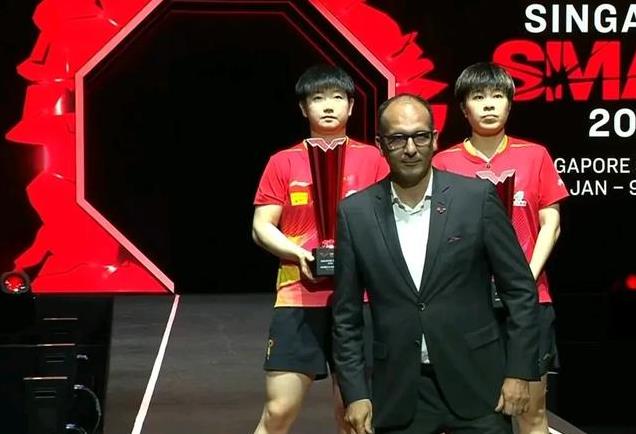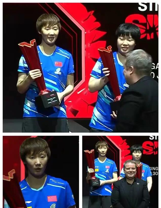 新加坡大满贯颁奖礼孙颖莎叉腰大迪神情严肃明显不服,曼昱开心