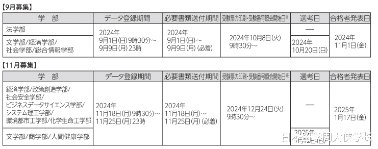 经济经营学部:2024年9月25日-9月27日(必着,网上申请)