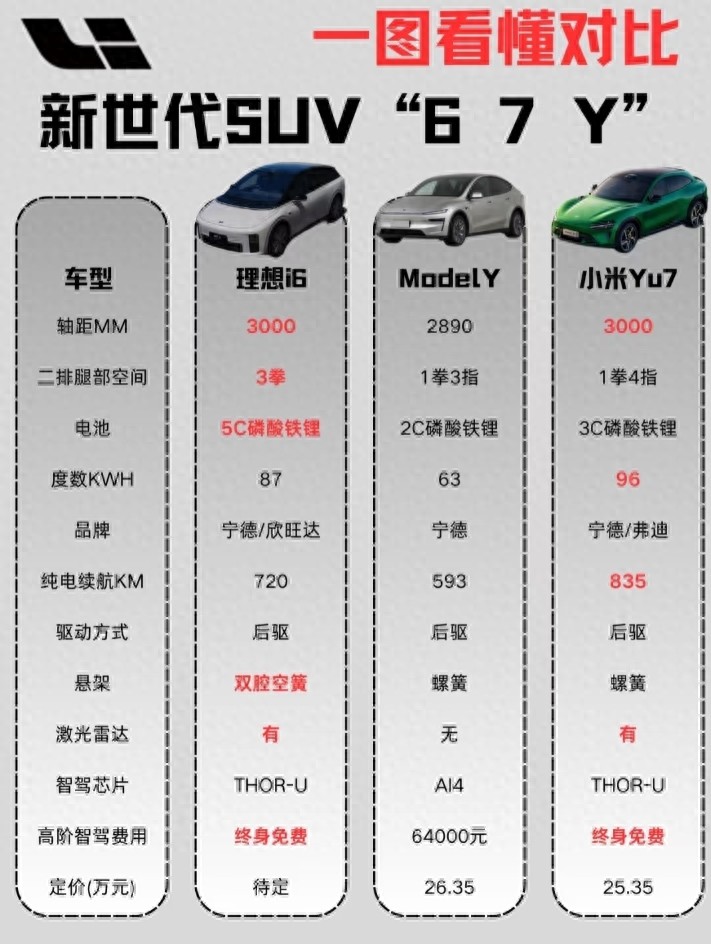 #理想汽车 #理想i6 #ModelY #小米YU7 #理想 #小米 #特斯拉 #新能源汽车 #SUV推荐 #汽车新品