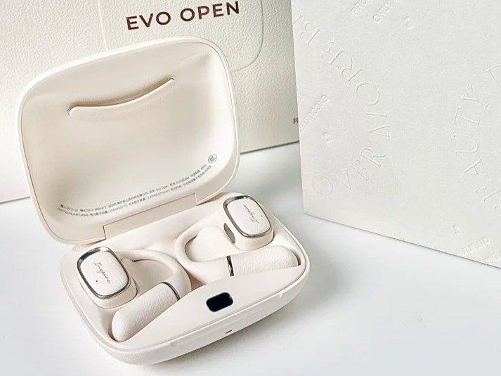 音质表现:花再 EVO OPEN 耳机音质配置可圈可点。其 18mm×11mm 大尺寸动态高灵敏喇叭,保障了低频与高频的表现;不仅支持LDAC编码,能够实现高吗率音频船速,还具有空间立体声效果,综合六轴传感器能够带来一定的声源方位变化感。