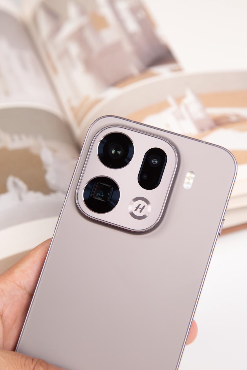 其次外观做工也超赞,我手上这台是绒砂钛配色,初上手的第一感觉就两字:高级!一体冷雕工艺打造的方形Deco与机身完全没有间隙,镜头凸起把控也非常到位,单手握持不会硌到,这点好评。