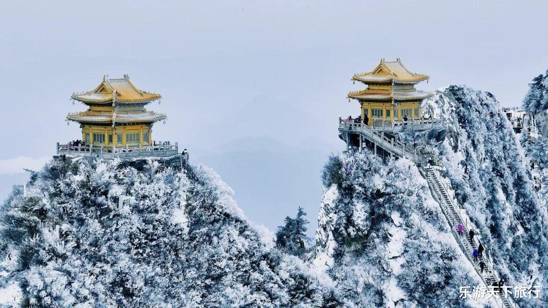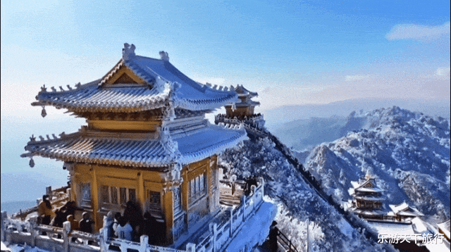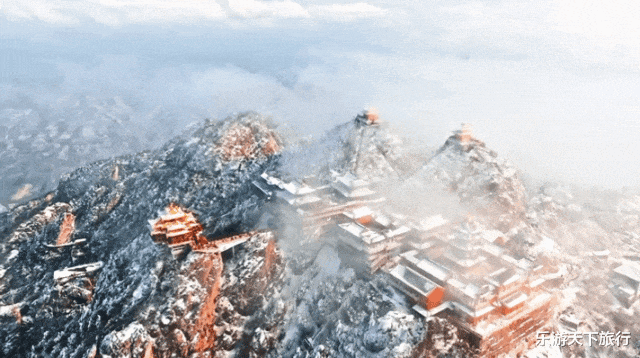 这是自然景观与人文建筑的绝妙融合,在国内其他山峰类景区,或仅有雪景,或仅有古建筑,很难有如此密集、壮丽且与山势完美契合的建筑群与冰雪云海共舞。