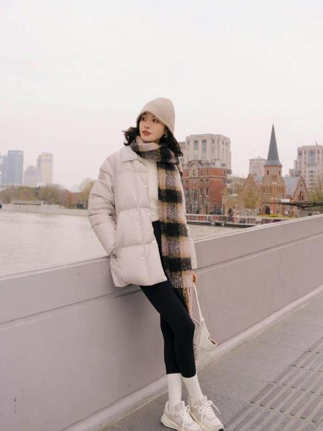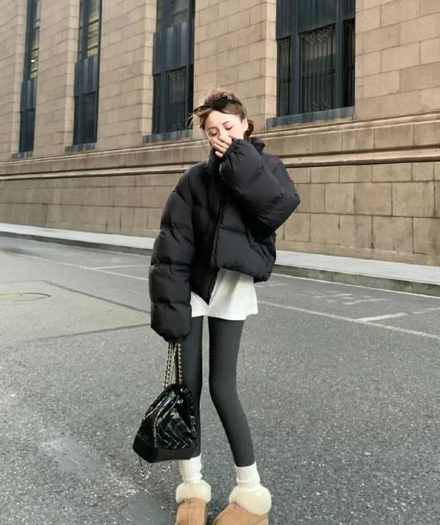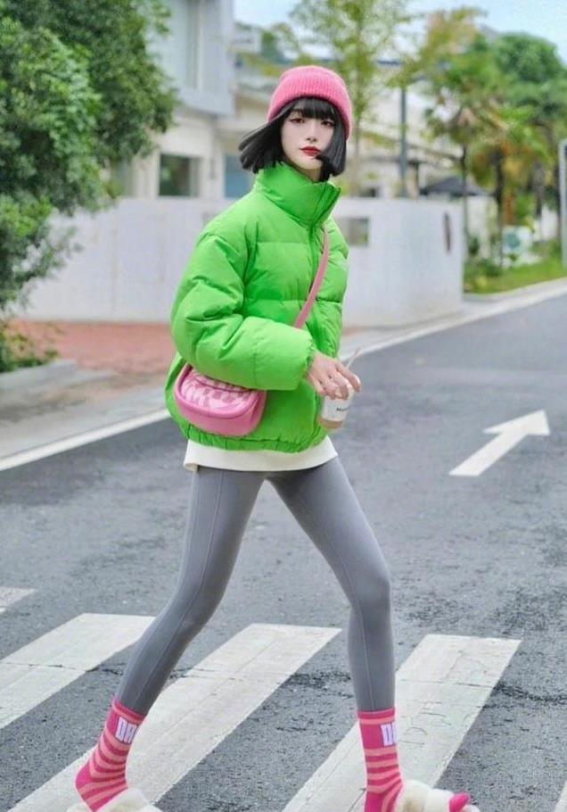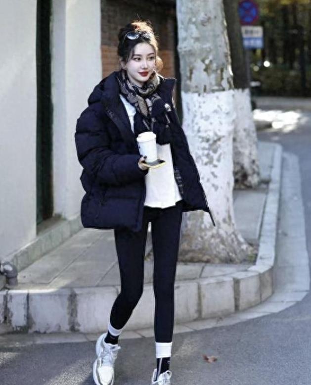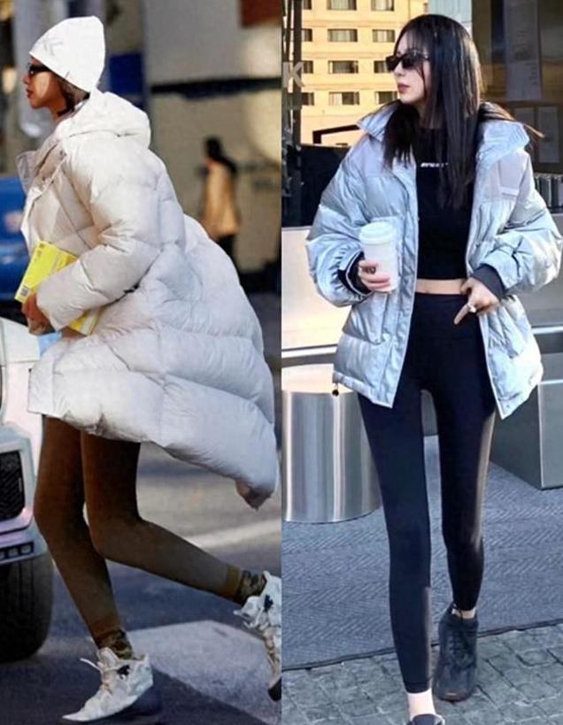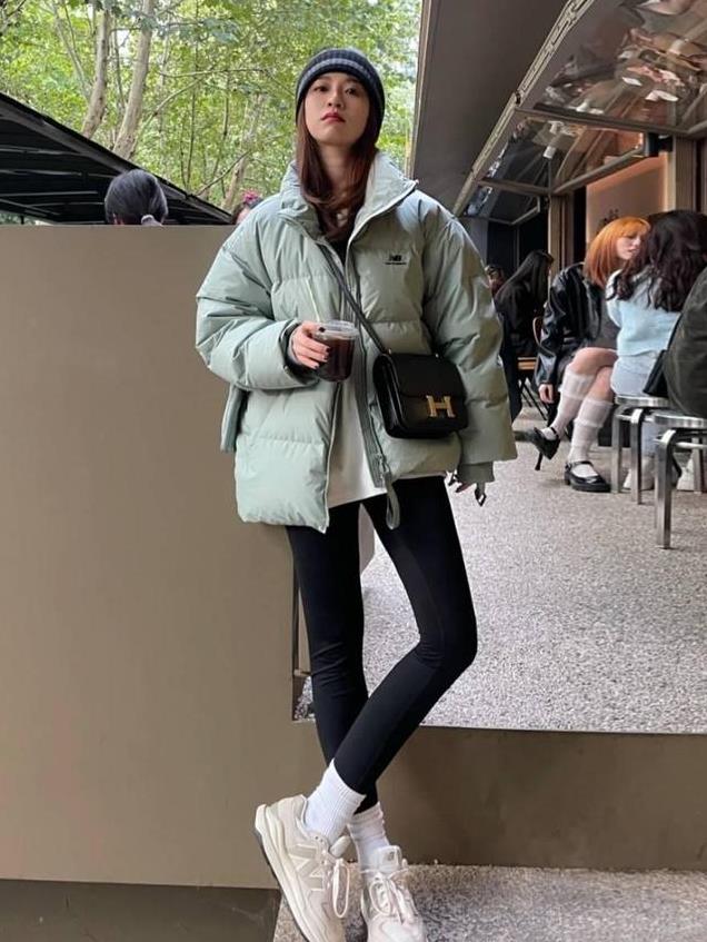 三、“上身羽绒服、下身无痕裤”,这样穿时髦又显瘦