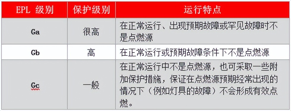 根据设备成为点燃源的可能性和爆炸性气体环境、爆炸性粉尘环境及煤矿甲烷爆炸性环境所具有的不同特征而对设备规定的保护级别。