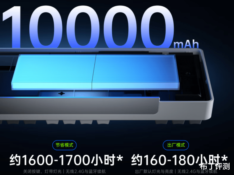续航方面,雷柏V700DIY-98长续航版相比普通版内置电池更大,配备了10000mAh容量电池,得益于雷柏基于自研技术新升级的低功耗无线技术,在关闭背光灯时无线连接能实现最长约1700小时续航,基本上那个大半年都不用充电。即使背光灯全开,使用出厂默认灯光和亮度,也能实现最长约180小时续航,可以说彻底解决了用户的续航焦虑。