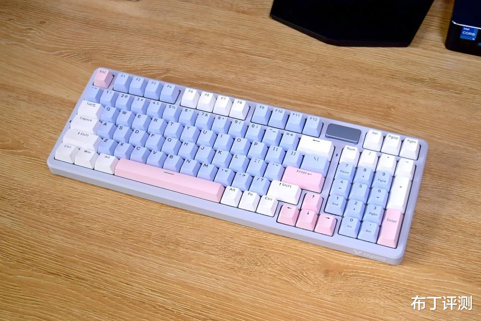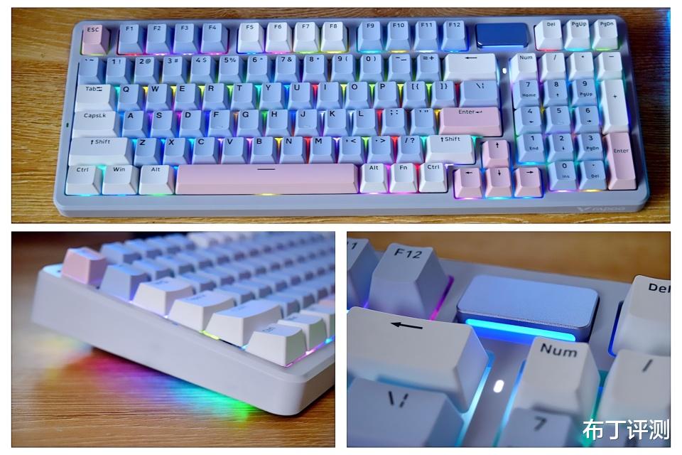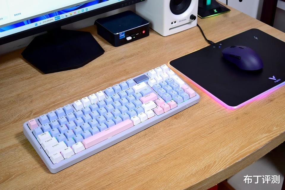 键盘采用了98配列布局,保留了主要功能键和完整的小键盘,相比传统104键盘长度短了约50毫米,这样可以为鼠标腾出更多操作空间。其中按键不仅支持全键无冲突和全键热插拔,而且还支持96键可编程,能够满足用户的多种使用需求。