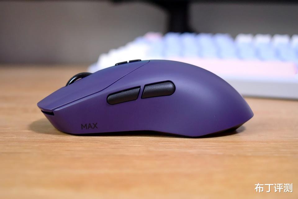 从侧面能看到,鼠标的侧腰采用内凹设计,能让拇指和小指摆放更自然,搭配自然饱满的尾部和平缓的弧度,可以有效提升抓握的稳定性,更适合内扣抓握。