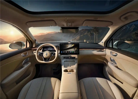 从官图来看,新车采用韶华杏配色与双层环抱式座舱布局,27英寸悬浮中控屏支持30°电动旋转,屏占比达93%,搭配全液晶仪表与三辐平底方向盘,营造出未来感十足的驾驶空间。细节处,透光木纹饰板集成128色氛围灯,电子档把集成指纹识别功能,可记忆座椅设置;全景天幕采用新型调光玻璃,紫外线隔绝率高达99%。