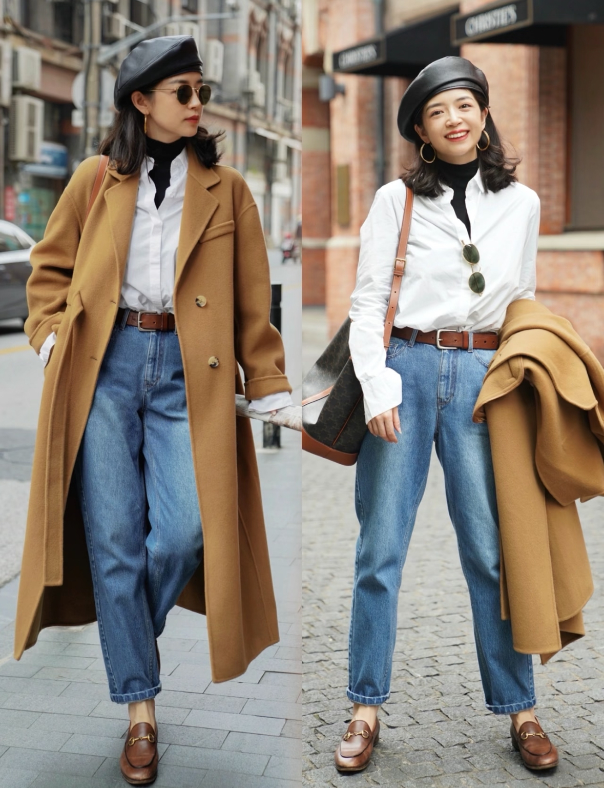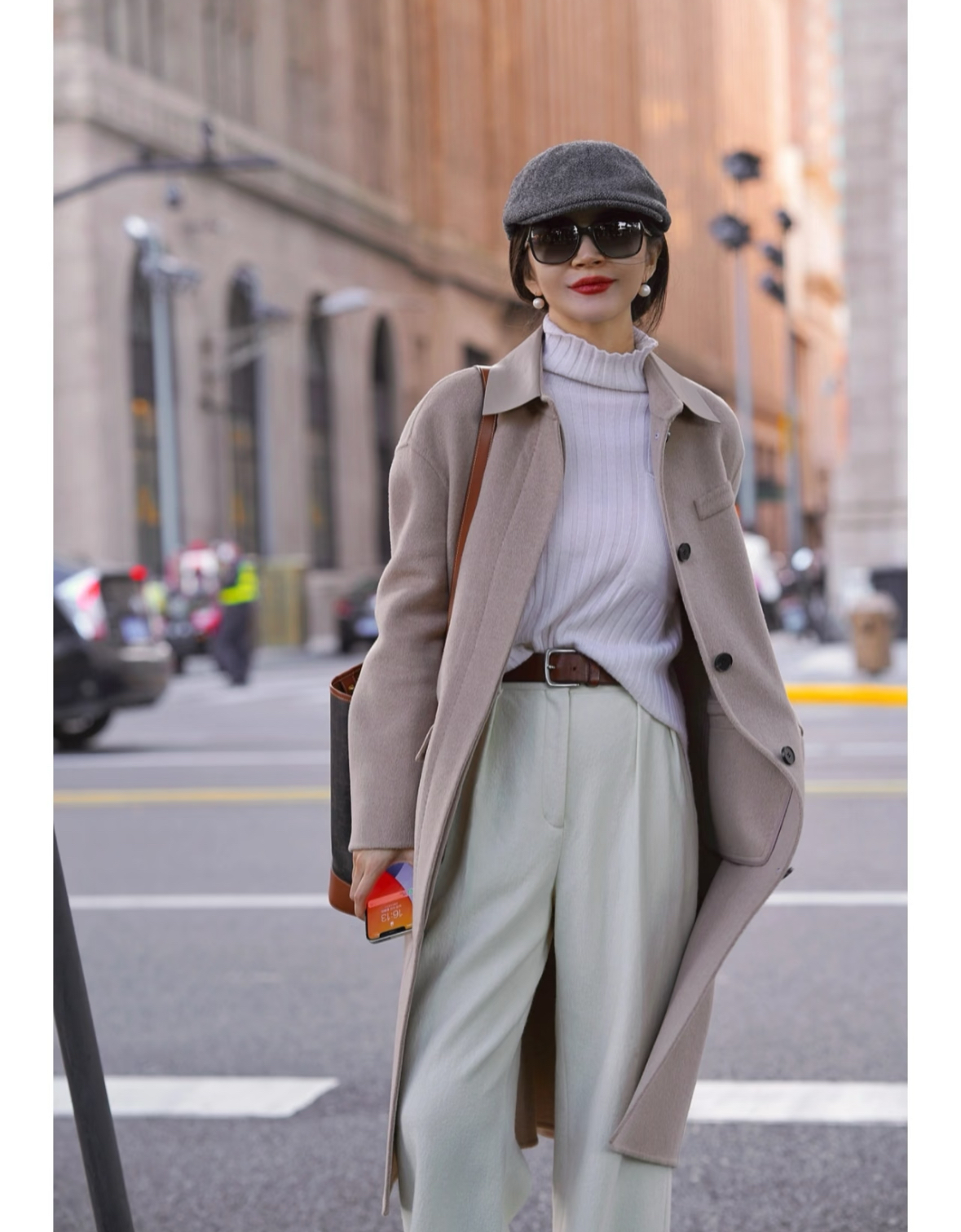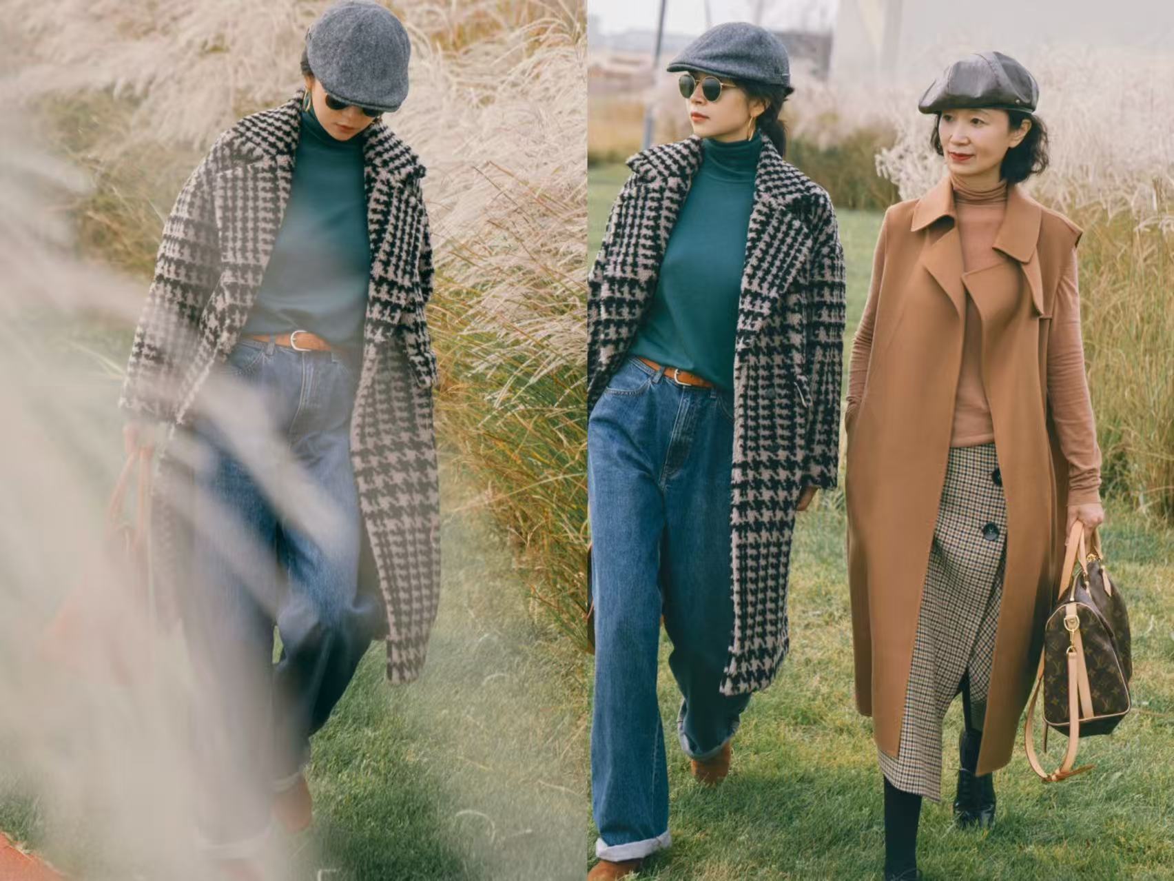 全身颜色不超过三种(包括大衣、内搭、鞋包)。如果你穿了一件有图案(如格纹、千鸟格)的大衣,内搭*首选纯色,并且最好是基础中性色(黑、白、灰、驼、蓝)。让大衣成为唯一的视觉焦点。