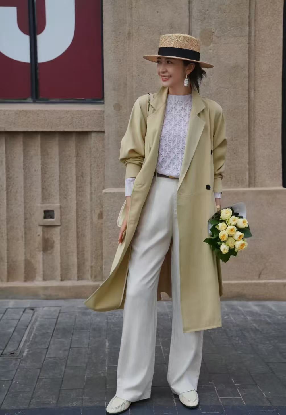 穿搭小知识点:当大衣是X型(系带款) 时,把腰带系得比实际腰线更高一些,并在前方系一个精致的结,侧面看会更显瘦。