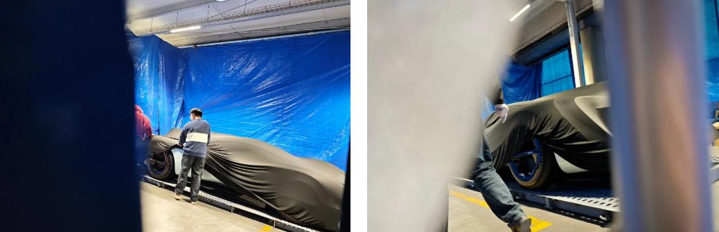 从现场曝光的画面来看,这款原型车与小米现有量产车型差异显著,低矮的车身姿态、宽大的车身尺寸以及极具攻击性的后扰流翼,都暗示着它并非普通量产车,更像是一款专为赛道打造的概念车型,整体气场拉满。