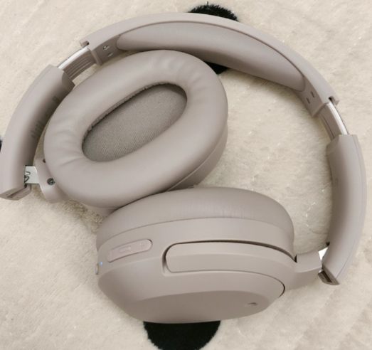 佩戴体验:耳罩为蛋白皮包裹的加厚记忆棉,触感柔软细腻,紧密贴合耳廓却不压迫耳道,且透气性出色,佩戴不闷热,折叠设计搭配便携包,通勤放背包侧兜、旅游收纳不占地