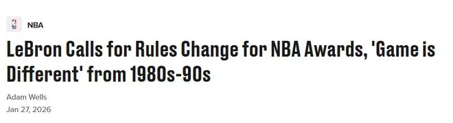 再休一场将无缘评奖!詹姆斯呼吁NBA改规则:如今比赛强度不一样