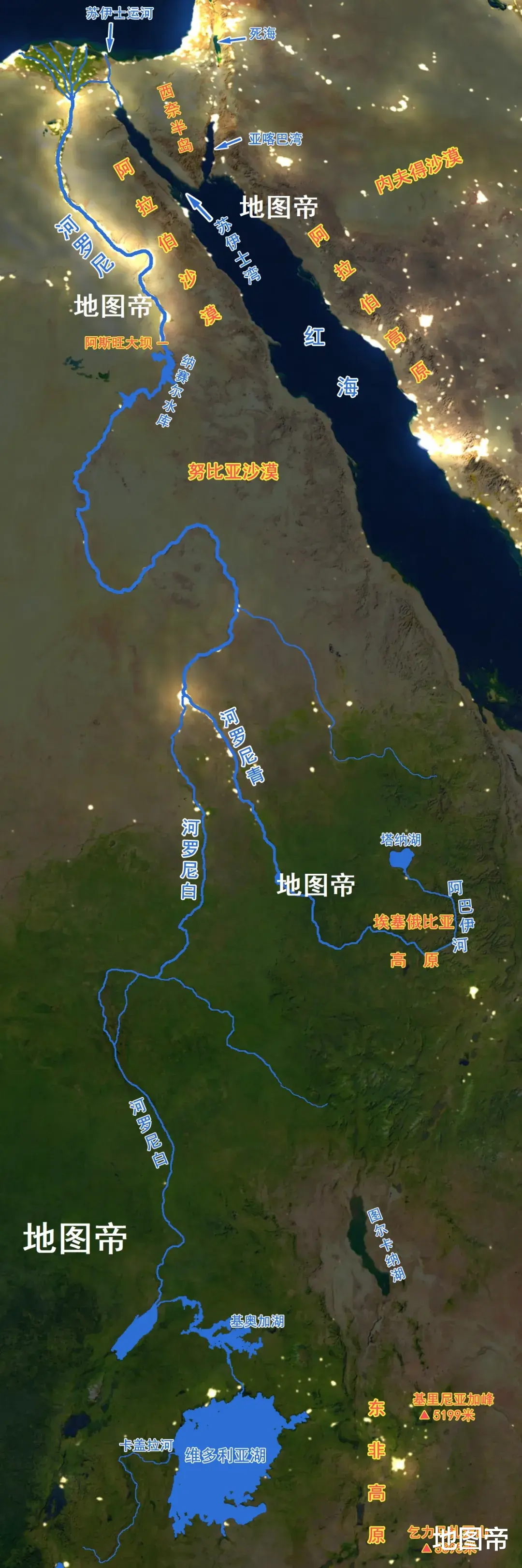 尼罗河在塔纳湖这条支线,分别是:小尼罗河-塔纳湖-阿巴伊河-青尼罗河-尼罗河。