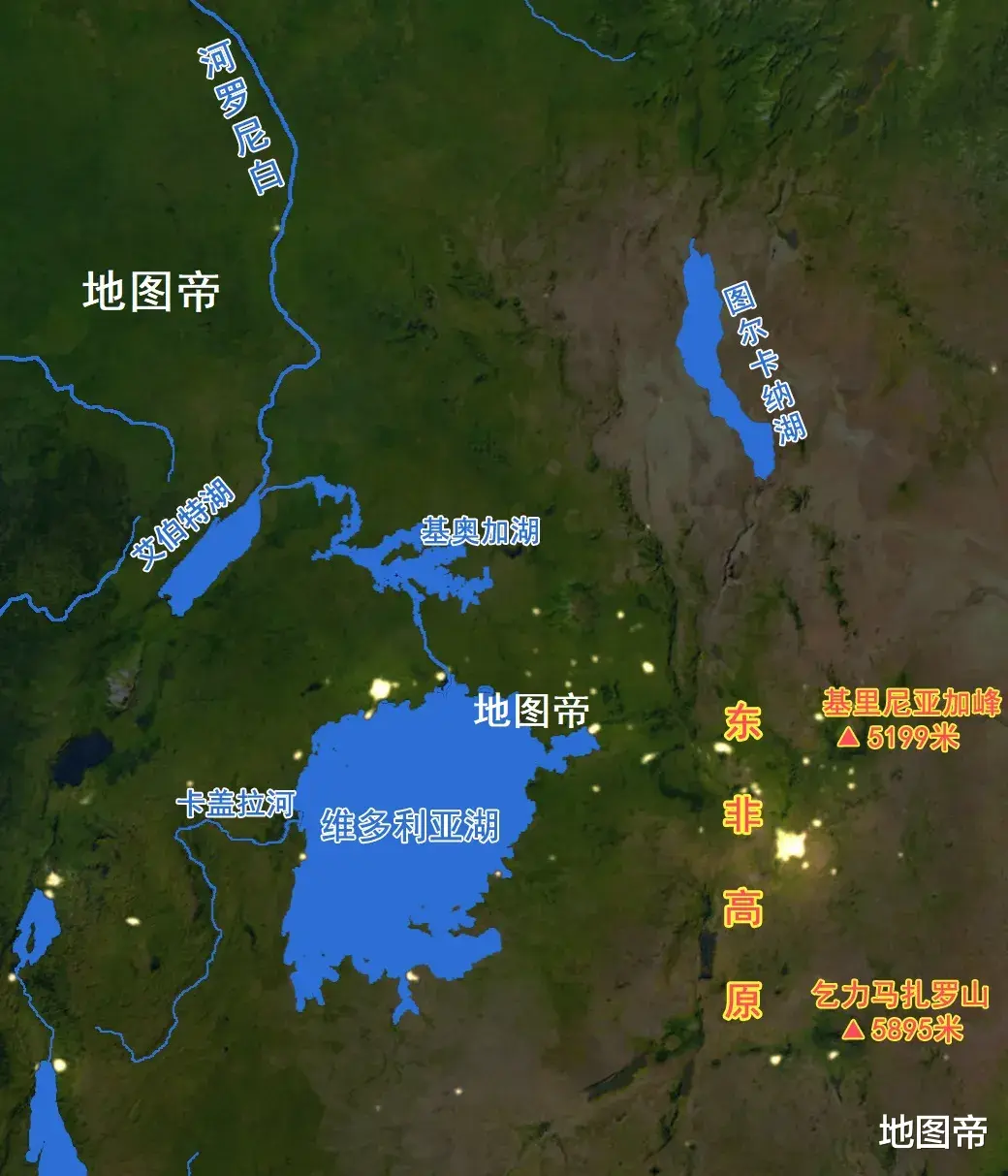 总的来说,按照“河源唯远”和“水量唯大”的原则,尼罗河有两个源头,相距超过2000千米。在埃及首都开罗,理论上能够同时捕捉到来自维多利亚湖和塔纳湖的鱼儿。
