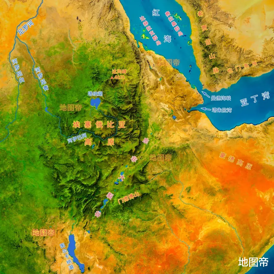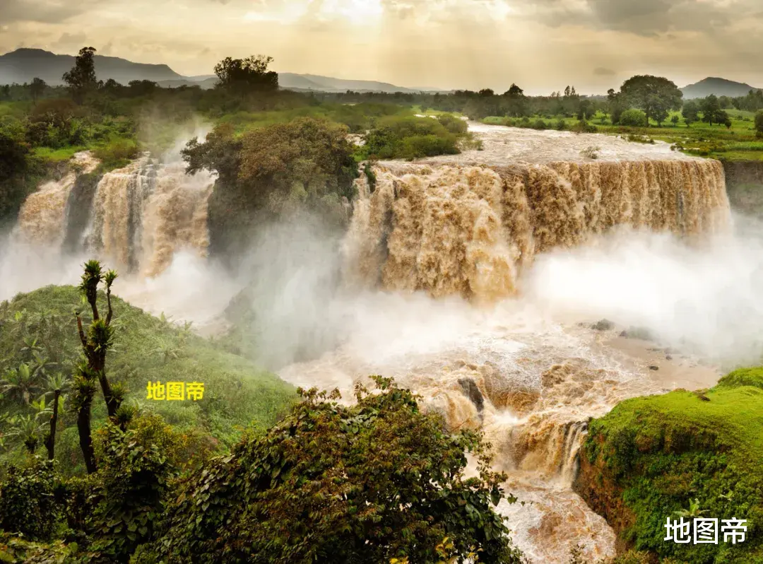 尼罗河流出埃塞俄比亚高原后,称为青尼罗河。雨季时期,青尼罗河带着大量肥沃土壤,从埃塞俄比亚高原呼啸而下,河水因淤泥呈深褐色,所以得名青尼罗河。
