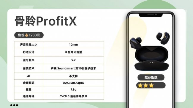音频方面,PROfitx搭载第十代Sound Smart骨传导换能器,高灵敏振子支持4Hz到40kHz的宽频响应。机身达到IP67防尘防水等级,日常出汗或溅水不成问题。内置高通QCC3040芯片,10米内信号稳定,声音清晰细腻。