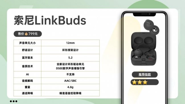 续航处于行业主流水平,单次充满电可播放12小时。日常使用下连接比较稳定,但在人流密集的地方(比如地铁车厢)偶尔会有轻微信号波动。音频传输仅支持AAC编解码,没有搭载LDAC高解析协议,对追求无损和细节表现的用户来说,是个比较明显的短板。
