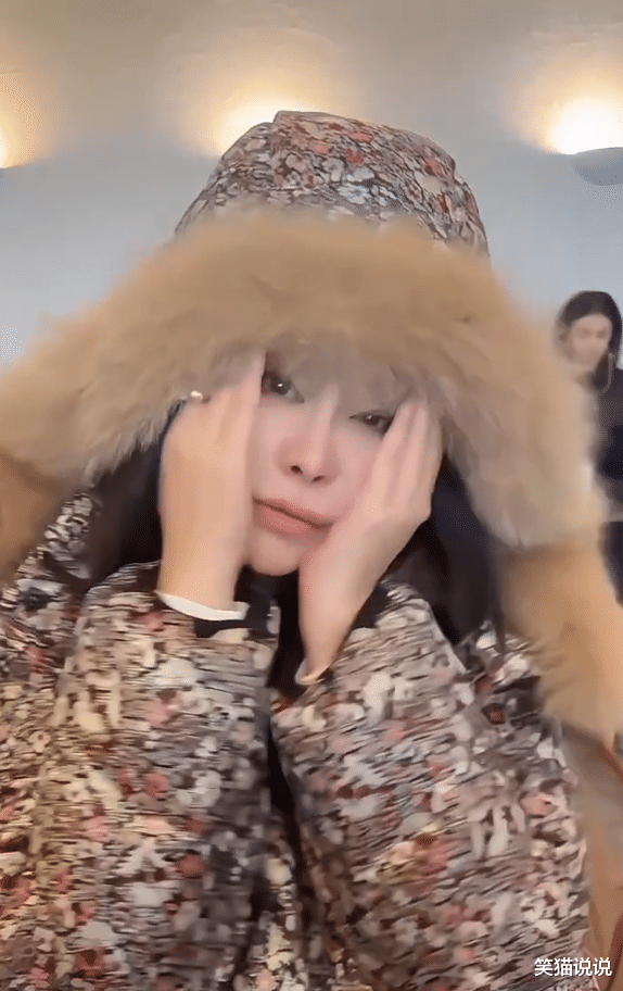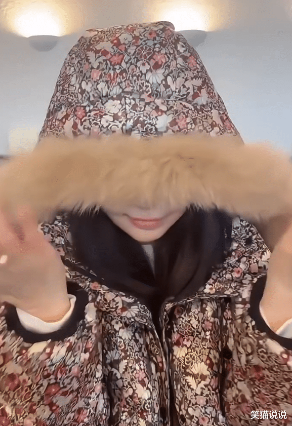在视频中可以看到,王祖贤穿着印花连帽的羽绒服外套,看起来很有时尚范。她披散着长发,戴着帽子,双手捧着脸颊,对着镜头摇头晃脑,样子看起来十分俏皮。