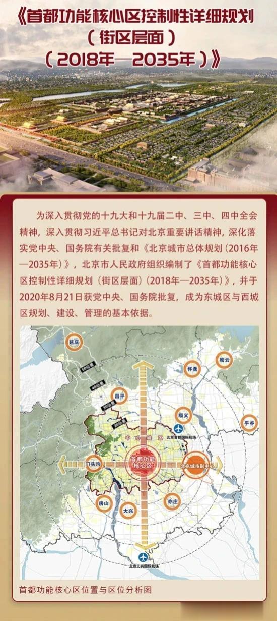6年前即2018年,北京市自然资源委员会公布了《首都功能核心区控制性详细规划(街区层面)(2018年—2035年)》,这是城市控制性详细规划层面第一次确定首都功能核心区范围,且很罕见地将东城区与西城区两个区合并编制控制性详细规划。所谓“首都功能核心区”就是北京市的西城区和东城区。首都功能核心区被定位为“全国政治中心、文化中心和国际交往中心的核心承载区”。