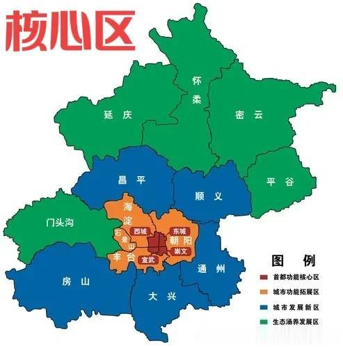 12年前即2012年,北京市编制完成了《北京市主体功能区规划》,对北京市的主体功能区范围进行了优化调整,其中一个重大调整就是将曾经属于首都功能核心区的石景山区调整为了“城市功能拓展区”,调整后的“首都功能核心区”仅仅包括北京市东城区和西城区(因为这个时候的崇文区和宣武区已经被撤销合并到了东西城区了)。