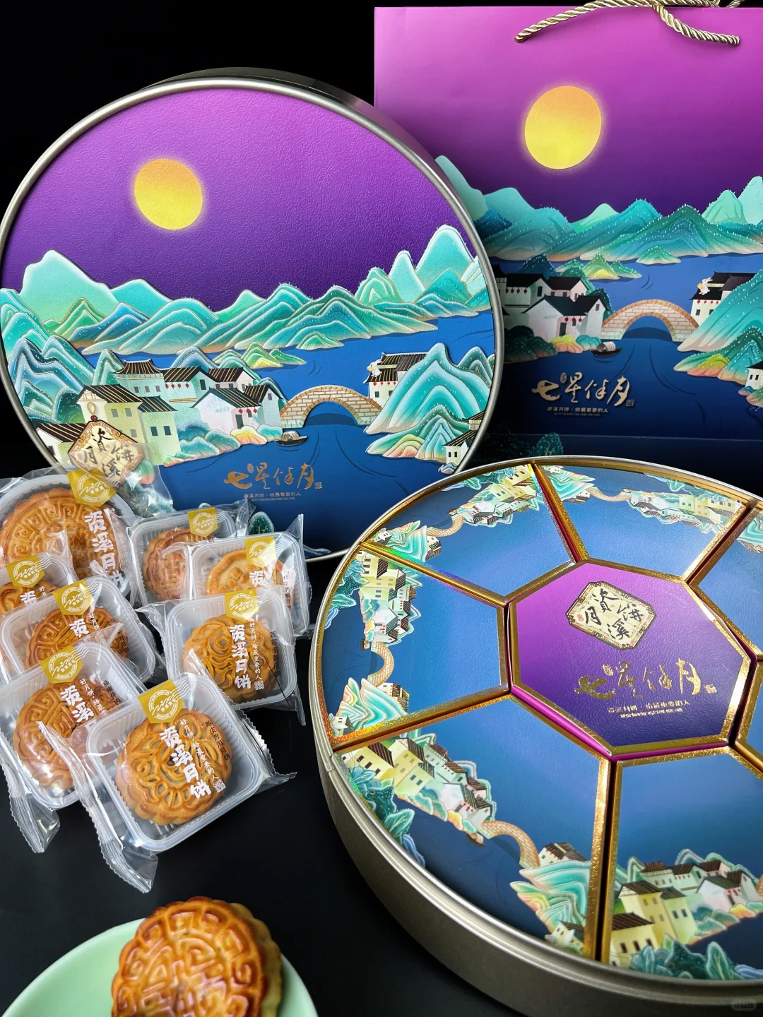 资溪面包上新「七星伴月月饼礼盒」、「书墨兰亭月饼礼盒」