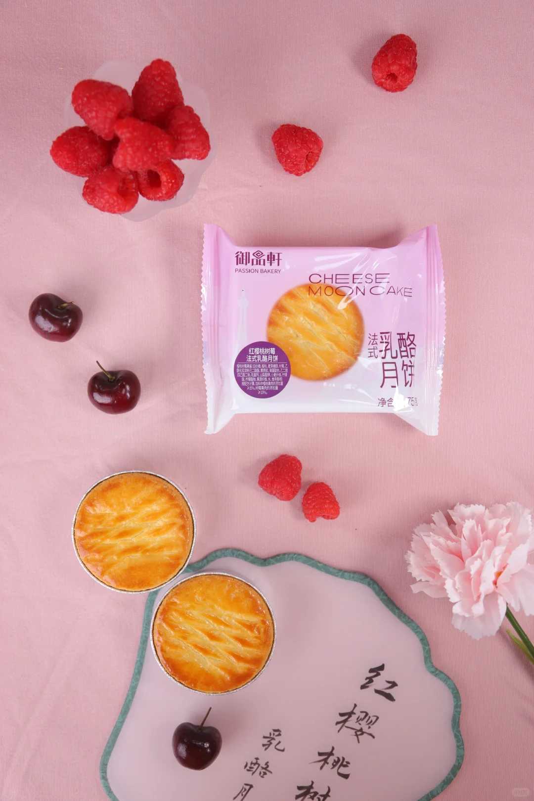 陕西油泼辣子法式乳酪月饼、蓝莓桑葚法式乳酪月饼、红樱桃树莓法式乳酪月饼、红枣桂圆法式乳酪月饼,各有各的特色,好吃又有新意!