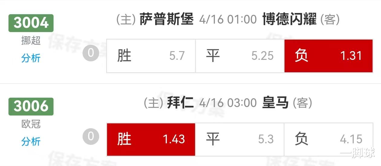 竞彩推荐:负 比分参考:1-2 0-2周三 006 欧冠 拜仁慕尼黑 VS 皇家马德里