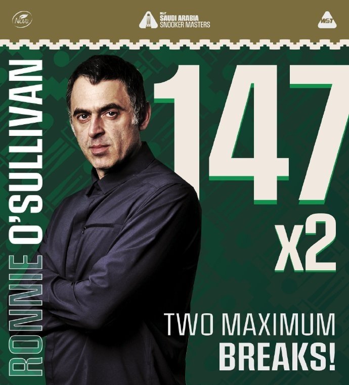 排第二就是奥沙利文,首先就是亚军的20万英镑,然后就是单杆最高分、5万英镑的三分之二,约3.3万英镑。至于两杆147的14.7万英镑,这部分奖金并不是沙特主办方出的,而是世台联给的。也就是说,火箭这次参赛累计拿到的38万英镑奖金,其中从沙特拿走的是23.3万英镑。