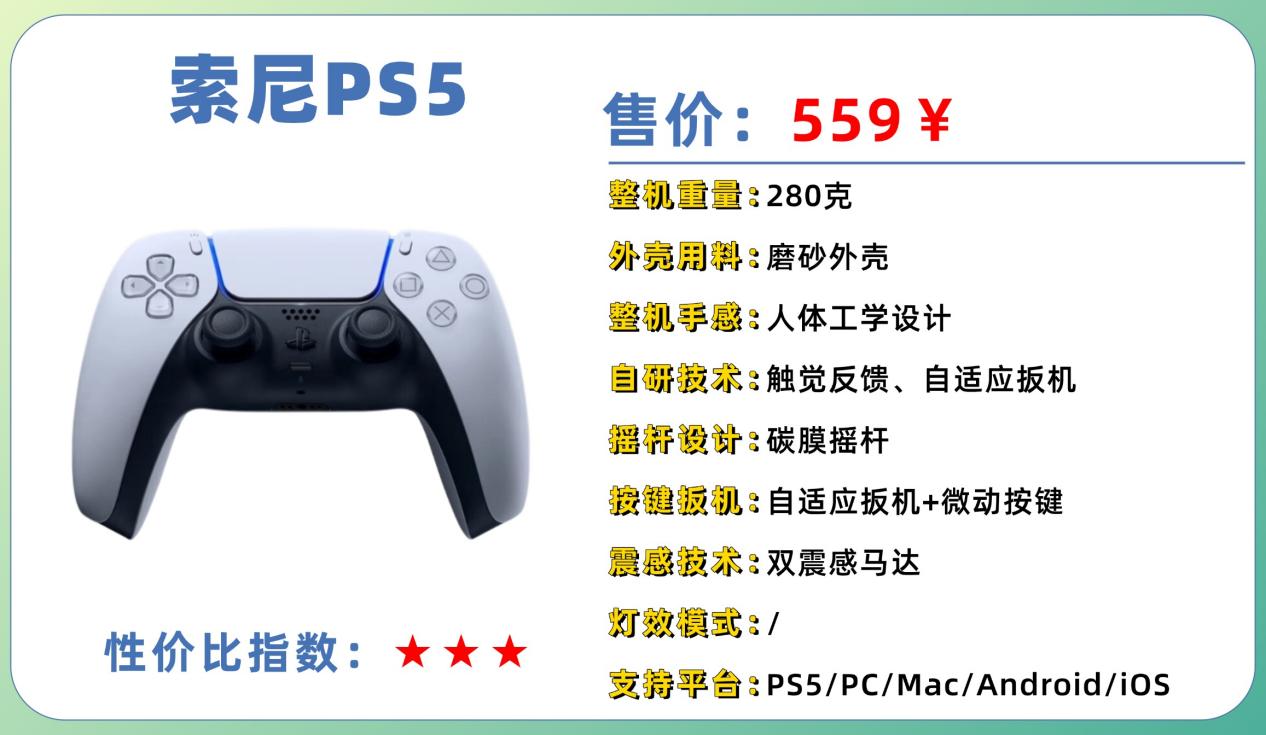 但作为旗舰手柄,其价格也明显高于普通手柄,对预算有限或只是轻度玩的玩家来说,性价比就不如中端款那么明显。此外,某些 PC 游戏或兼容性可能需要额外适配。但如果你追求旗舰体验、沉浸感与手感极致,DualSense 是很值得入手的一款。