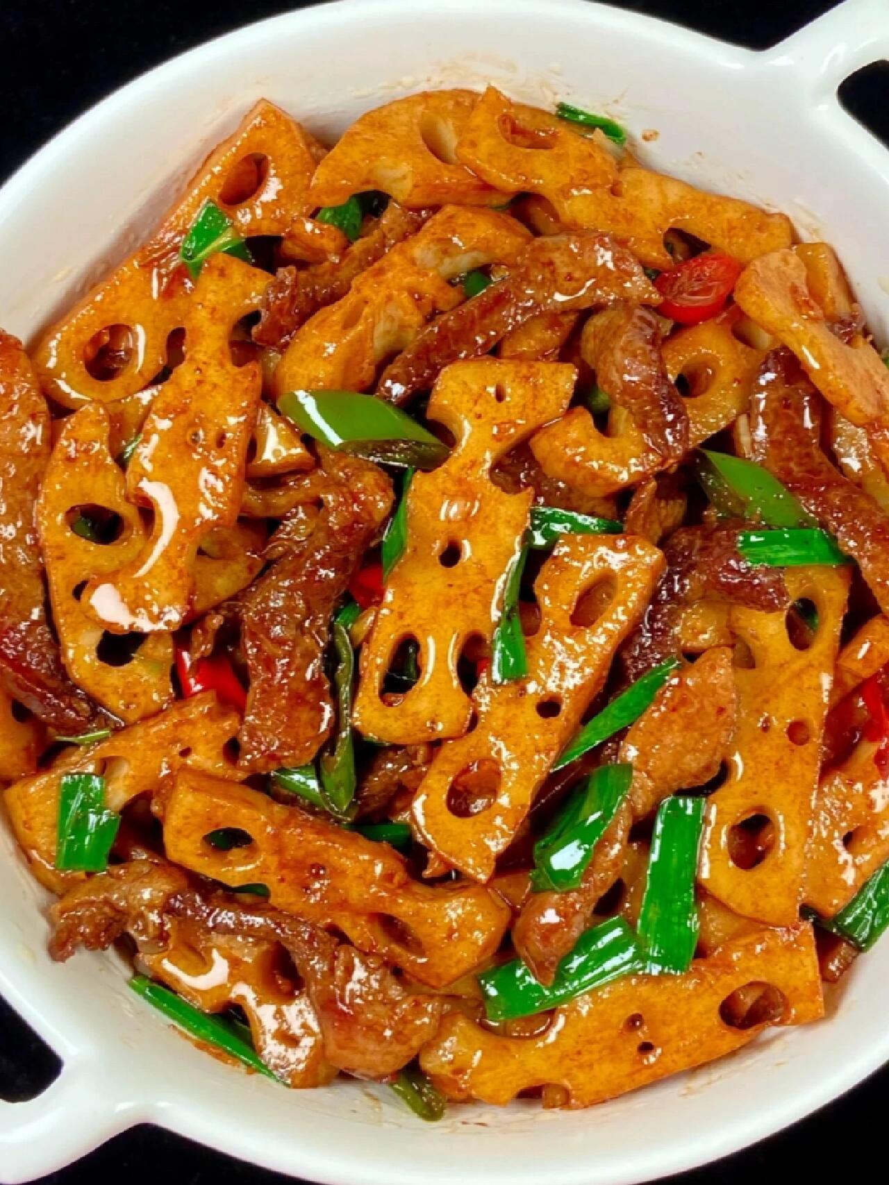 这道菜最妙的是口感的对比:莲藕的脆、肉片的嫩、偶尔咬到的葱花清香,每一口都是小惊喜。而且莲藕本身有清热凉血的功效,搭配猪肉的温补,吃起来既满足又没负担,简直是家常菜界的"健康担当"。