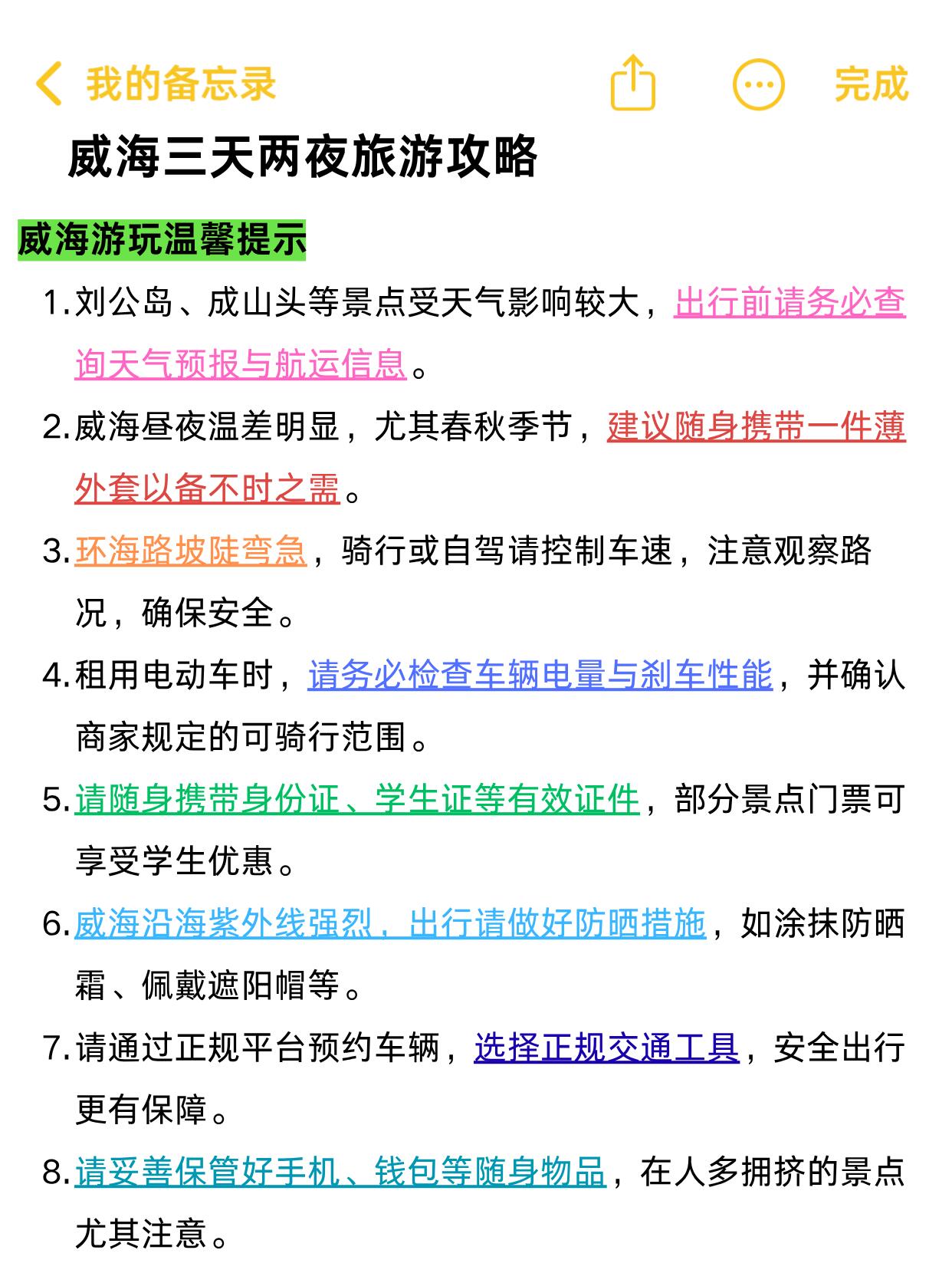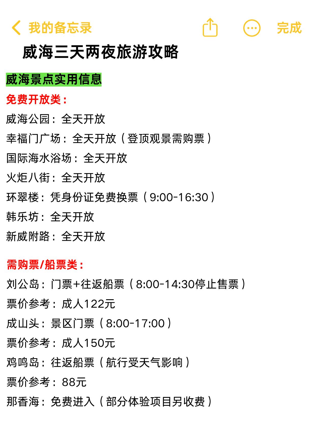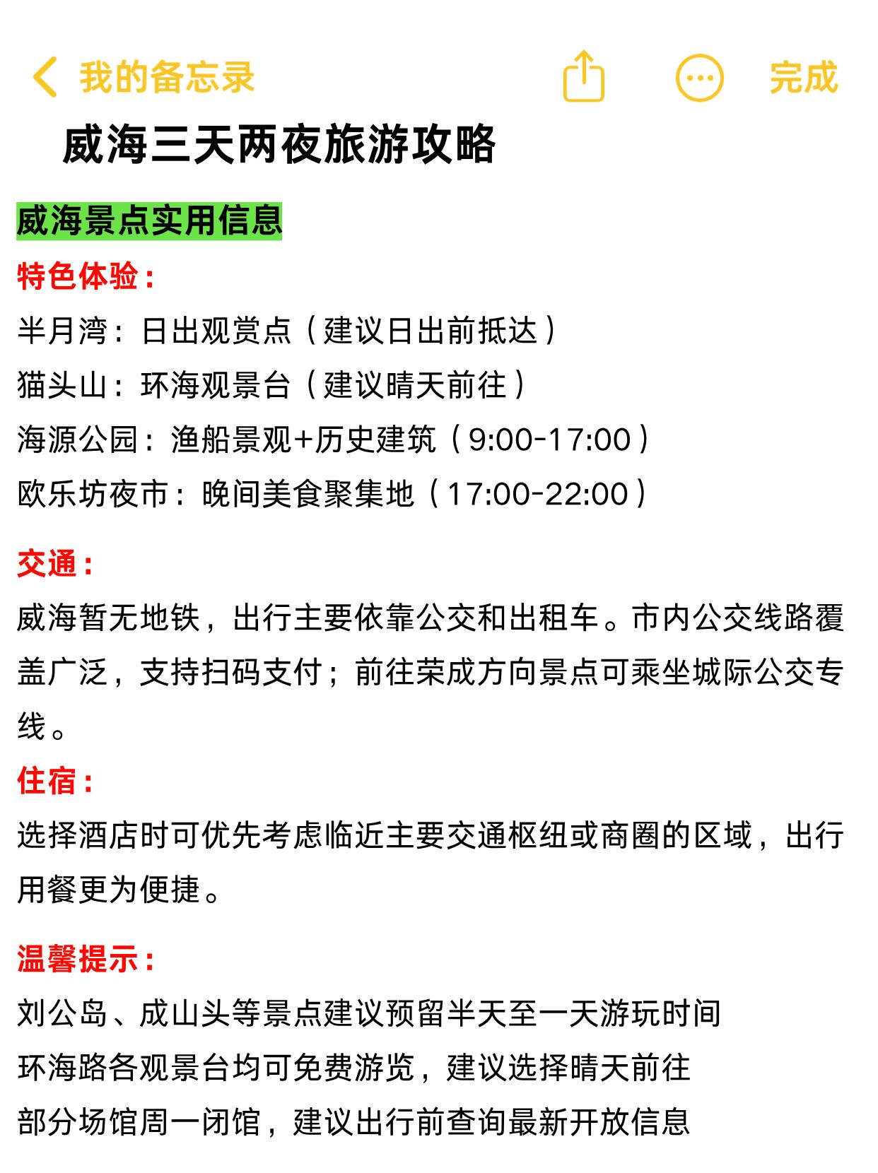 🚄 高铁抵达:建议选择威海站(韩乐坊商圈),其次威海北站(靠近国际海水浴场)