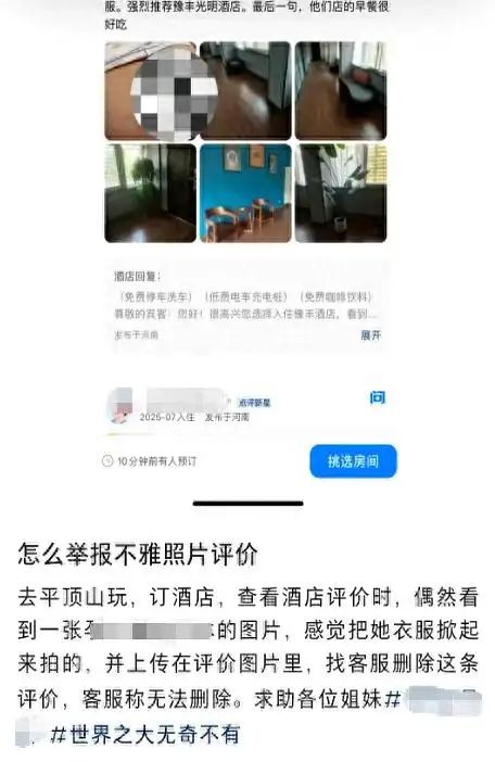 酒店前台每天要办入住、接电话、处理投诉,忙得脚不沾地,谁有空盯着评论区看有没有人发不雅照?就算看到了,点“报告”之后呢?携程没说处理时限,没说反馈机制,更没说如果平台迟迟不处理,责任算谁的。