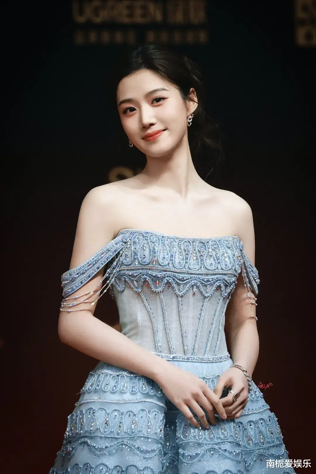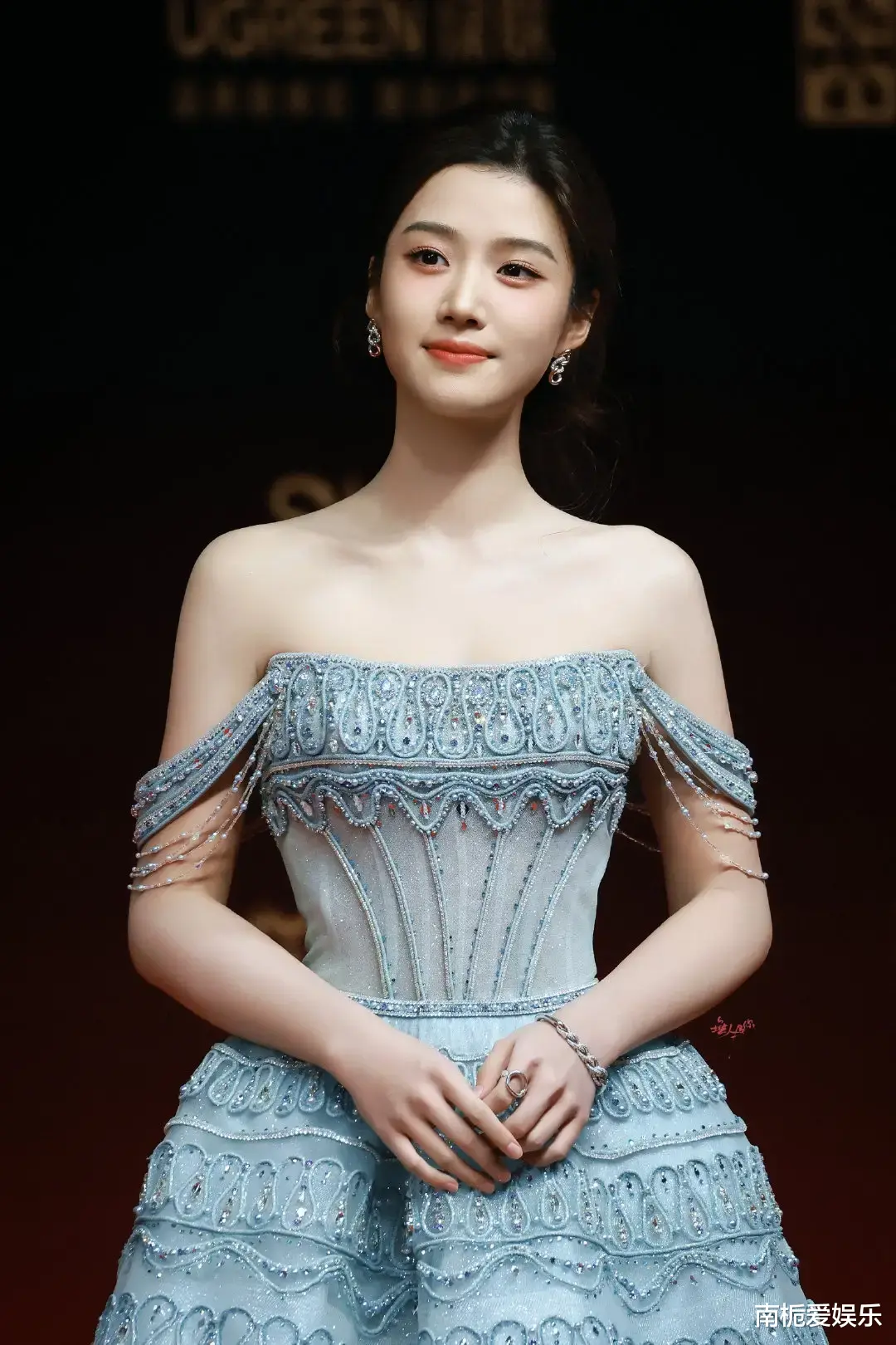 工作室提前释出的精修图中,卢昱晓披肩长发如云,宛如“冰雪公主”降临;可当现场生图流出,画风突变——原本预想的浪漫花朵发型被临时改为贴头皮盘发,高发际线暴露无遗,夸张耳饰反而拉低了视觉重心。曾被赞美的优越肩颈线条在特定角度下显得臃肿,与精修图的“仙气飘飘”形成强烈反差。网友纷纷质疑:“精修是公主,现场像刚下灶台的厨娘?”争议迅速发酵。