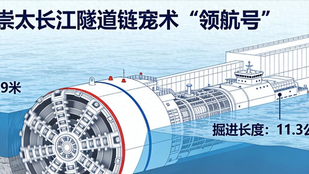承担此次掘进任务的 “领航号” 盾构机,是我国自主研制的世界最大直径高铁盾构机。整机总长 148 米、重约 4000 吨,刀盘直径达 5 层楼高,搭载智能掘进、高水压密封、数字孪生管控等核心技术。自 2024 年 4 月始发,历经 23 个月连续施工,成功穿越复杂地质、高水压及长江主航道,创造 15 米级大直径盾构一次性连续掘进超 11 公里的世界纪录。