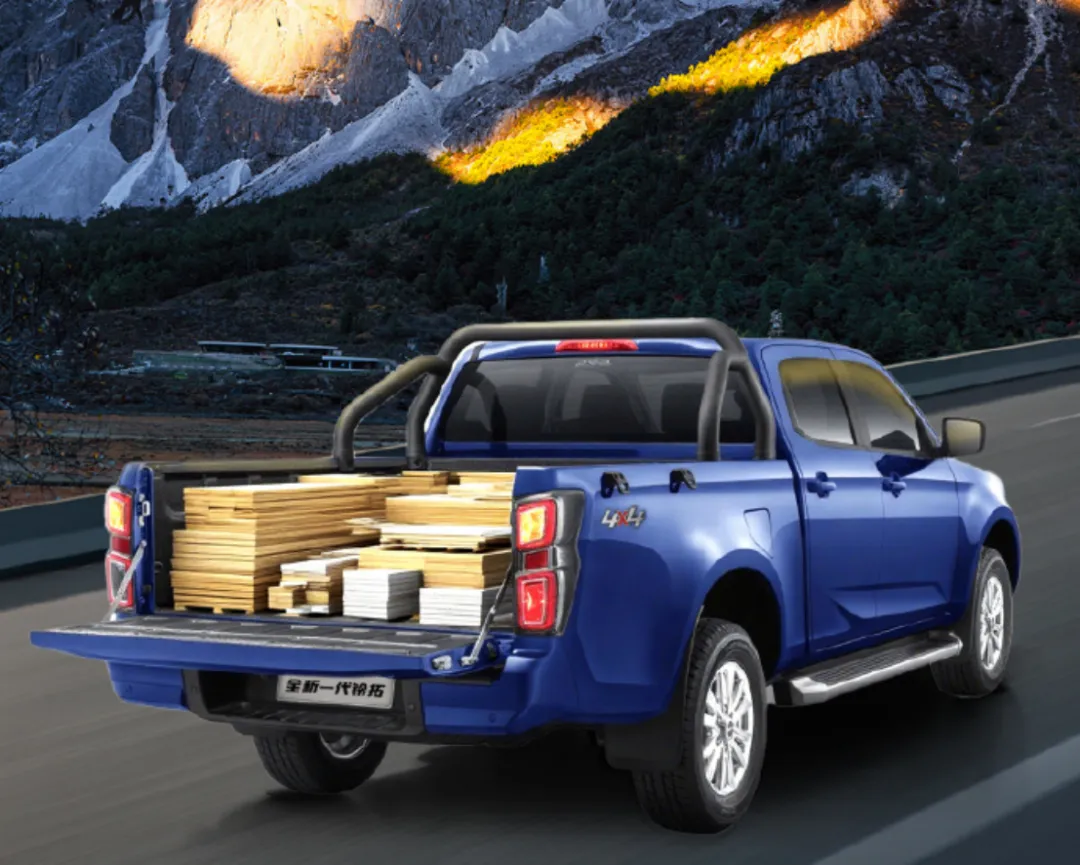 平底货箱版则堪称"创业路上的效率利器",聚焦小微企业与创业者痛点,以平整货箱设计破解传统皮卡轮拱凸起导致的摆放不规整、空间浪费问题,适配板材、管材等长条货物装载,且便于叉车作业。装载效率的提升,直接转化为创业者的经济效益,成为助力事业发展的实用工具。
